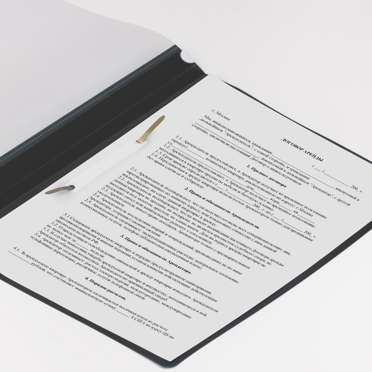 Описание товара 229239, (цена за 75 шт.) Скоросшиватель пластиковый STAFF, А4, 100/120 мкм, черный, 229239