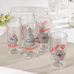 Набор стаканов «Люблю», для коктейля, 250 мл, 6 шт, рисунок МИКС