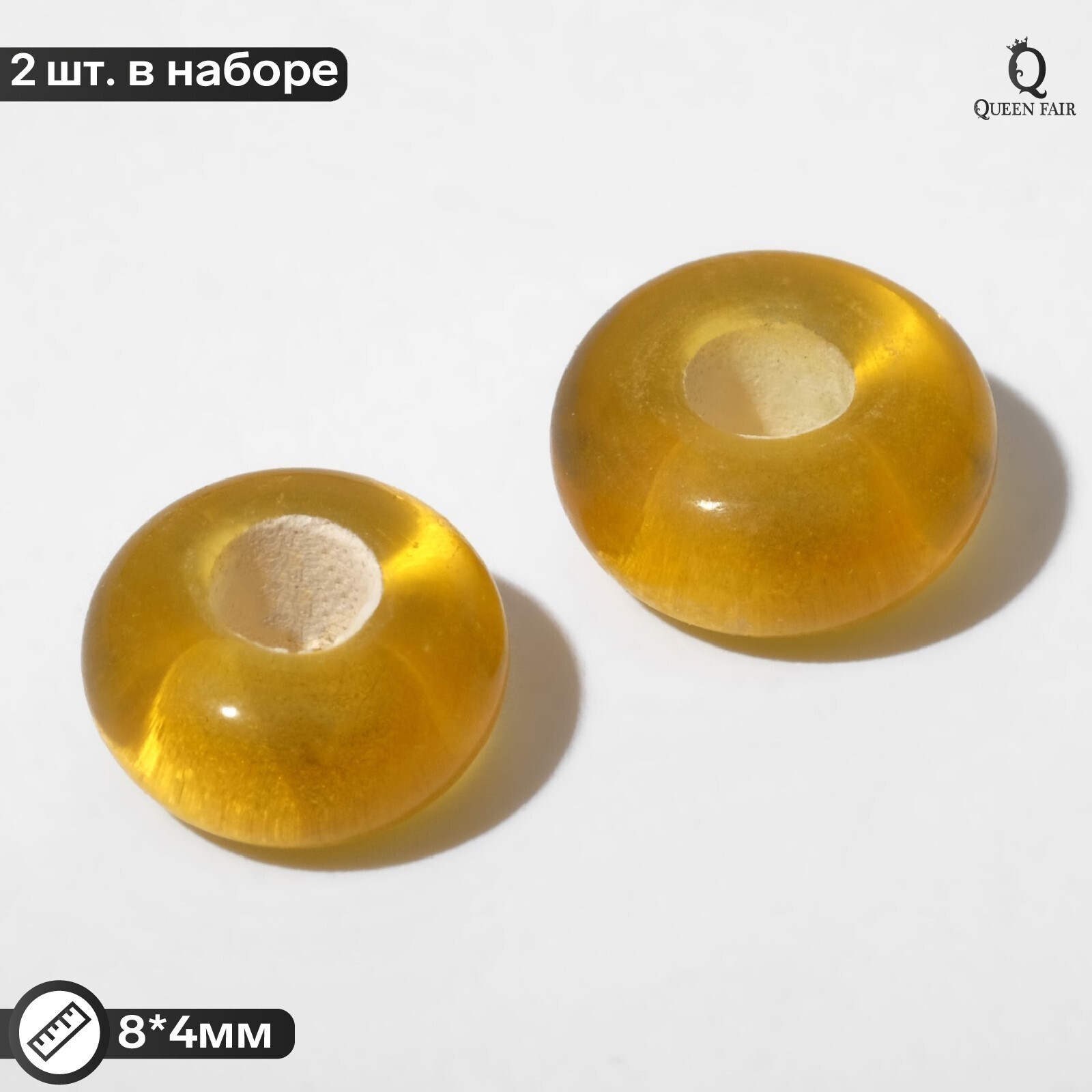 Бусина стеклянная "Preciosa" кольцо (набор 2шт), 8*4мм, цвет жёлтый