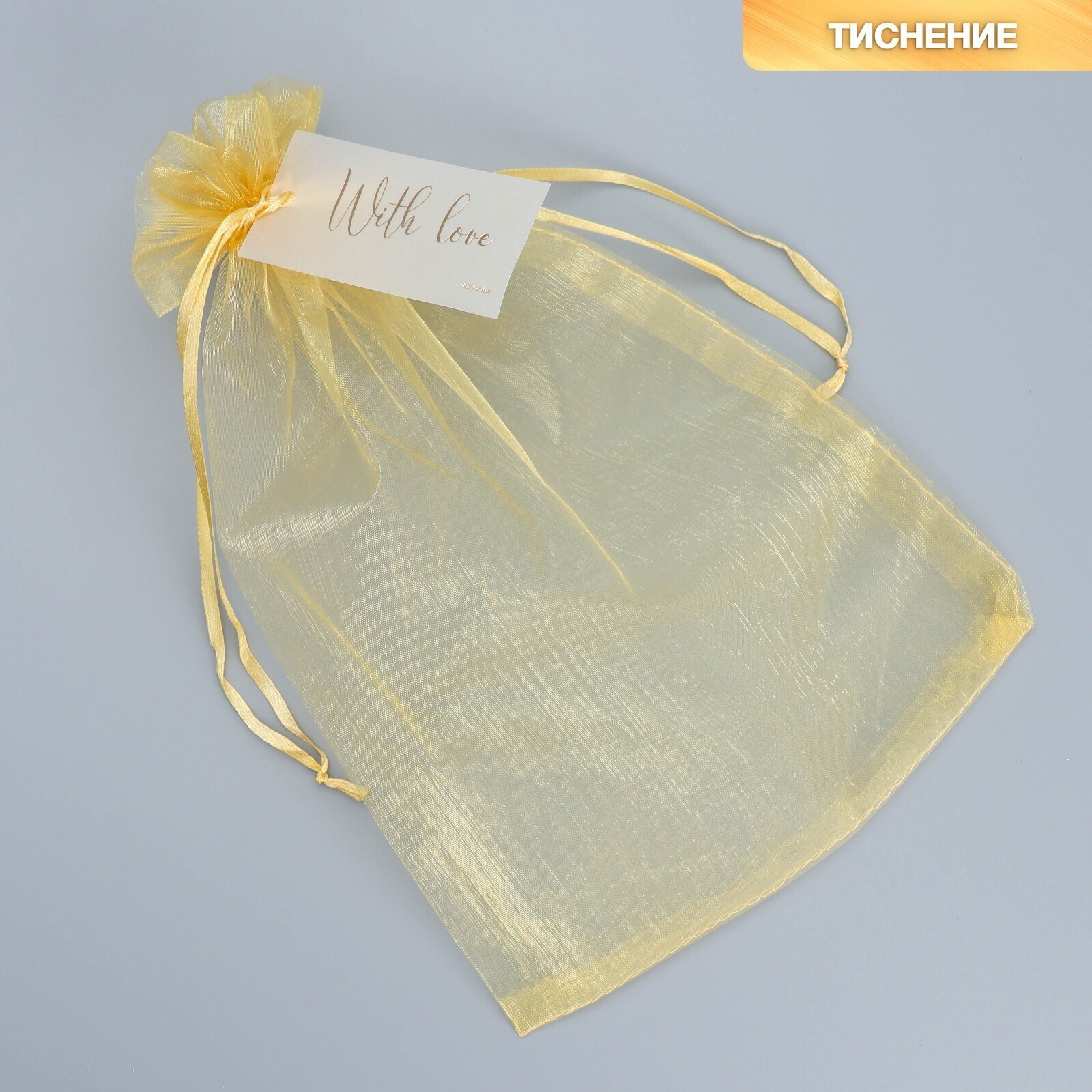 Мешочек подарочный органза золотой «Золото», с шильдиком, 20 х 30 см