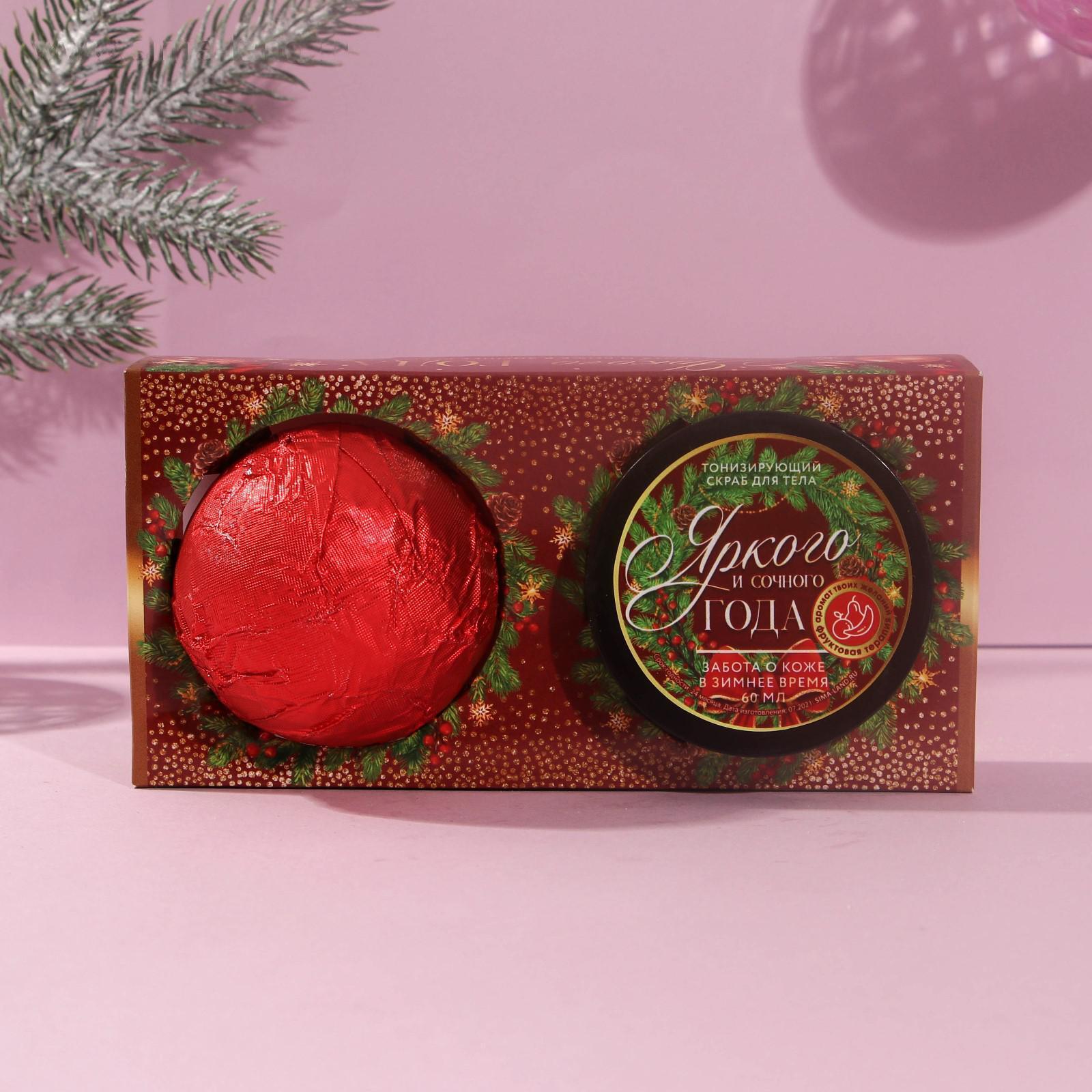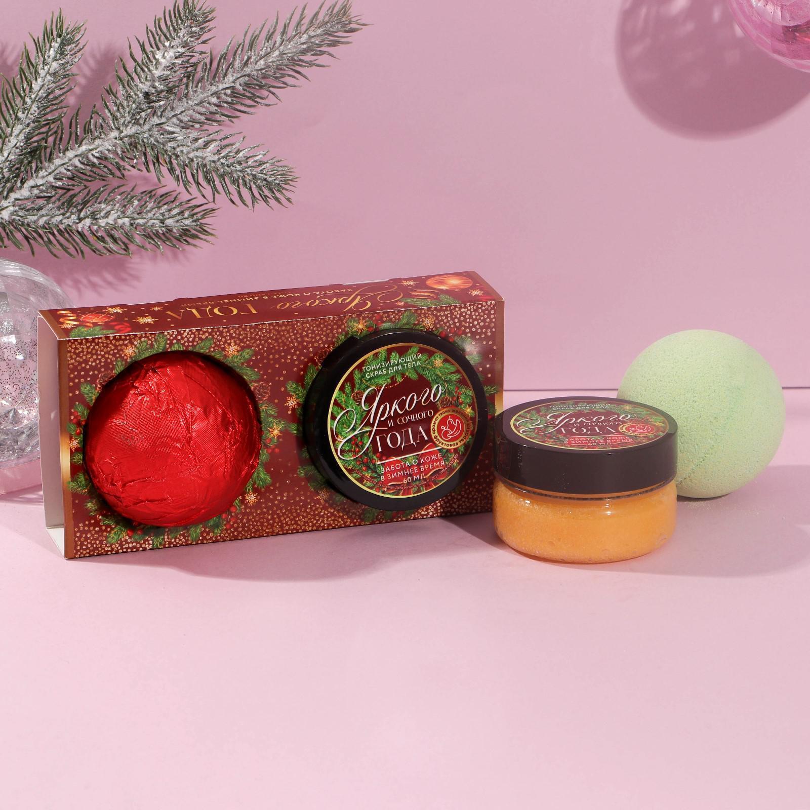 Набор "Яркого года!": скраб для тела, аромат тропические фрукты, бомбочка для ванны 130 г