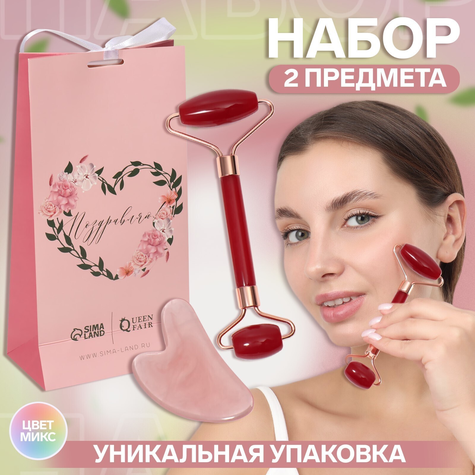 Подарочный набор «Поздравление», 2 предмета: роллер, гуаша, цвет МИКС