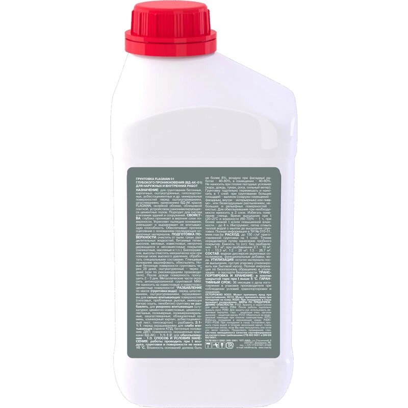 Грунтовка FLAGMAN 01 глубокого проникновения (ВД-АК-01) бесцветная 1л (1,0 кг)