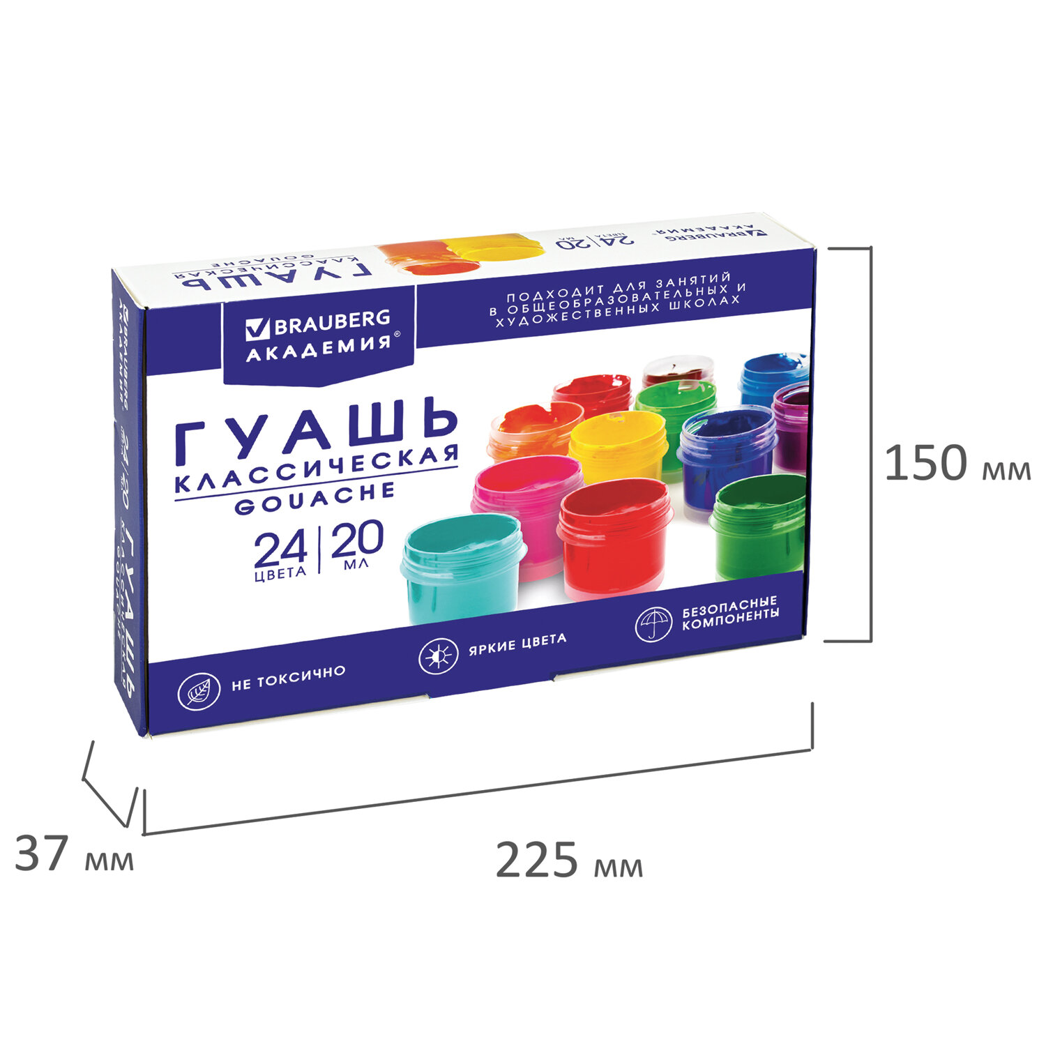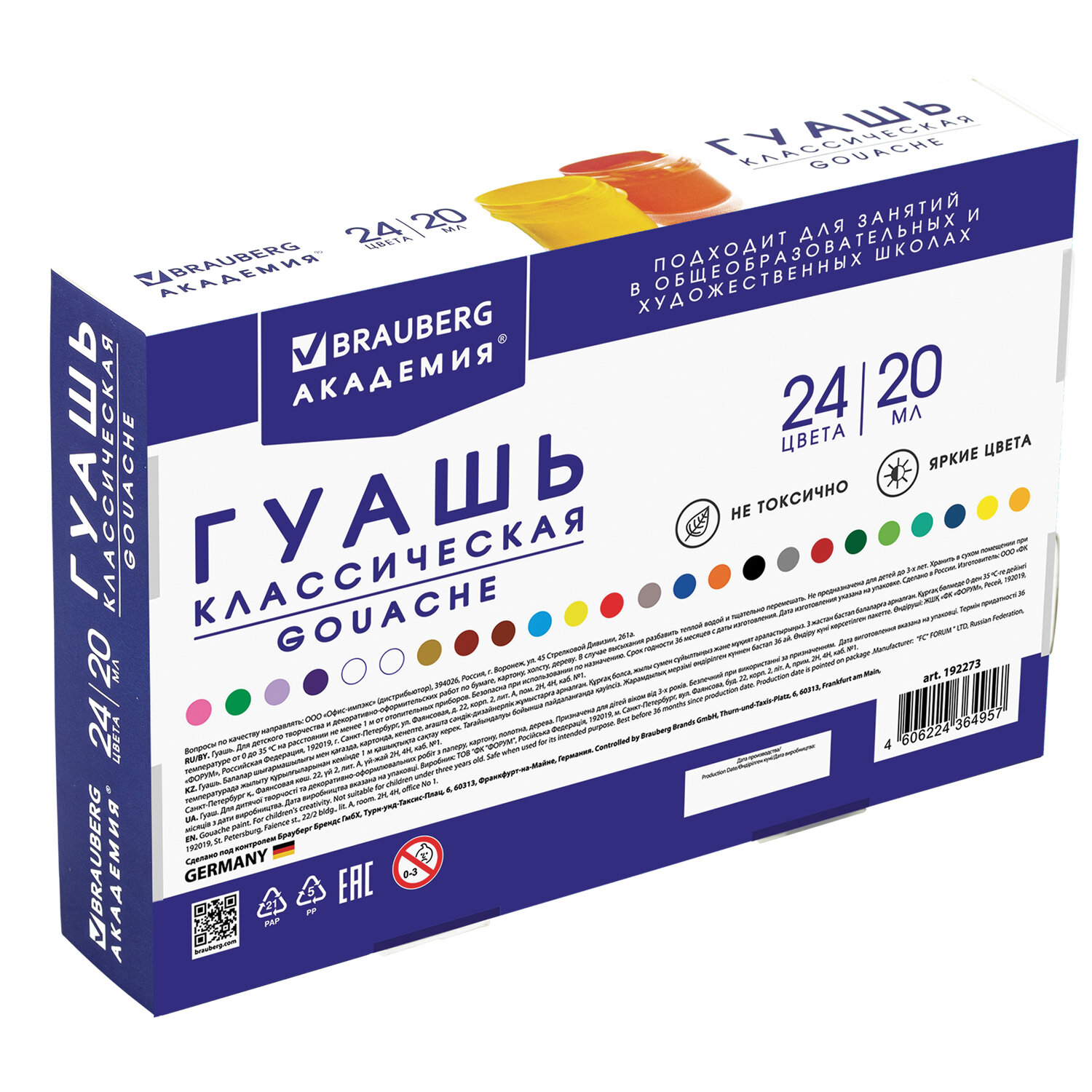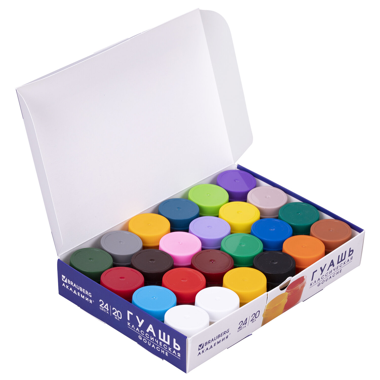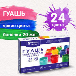 192273, Гуашь BRAUBERG "АКАДЕМИЯ КЛАССИЧЕСКАЯ", 24 цвета по 20 мл, 192273