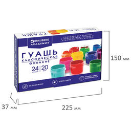 Описание товара 192273, Гуашь BRAUBERG "АКАДЕМИЯ КЛАССИЧЕСКАЯ", 24 цвета по 20 мл, 192273