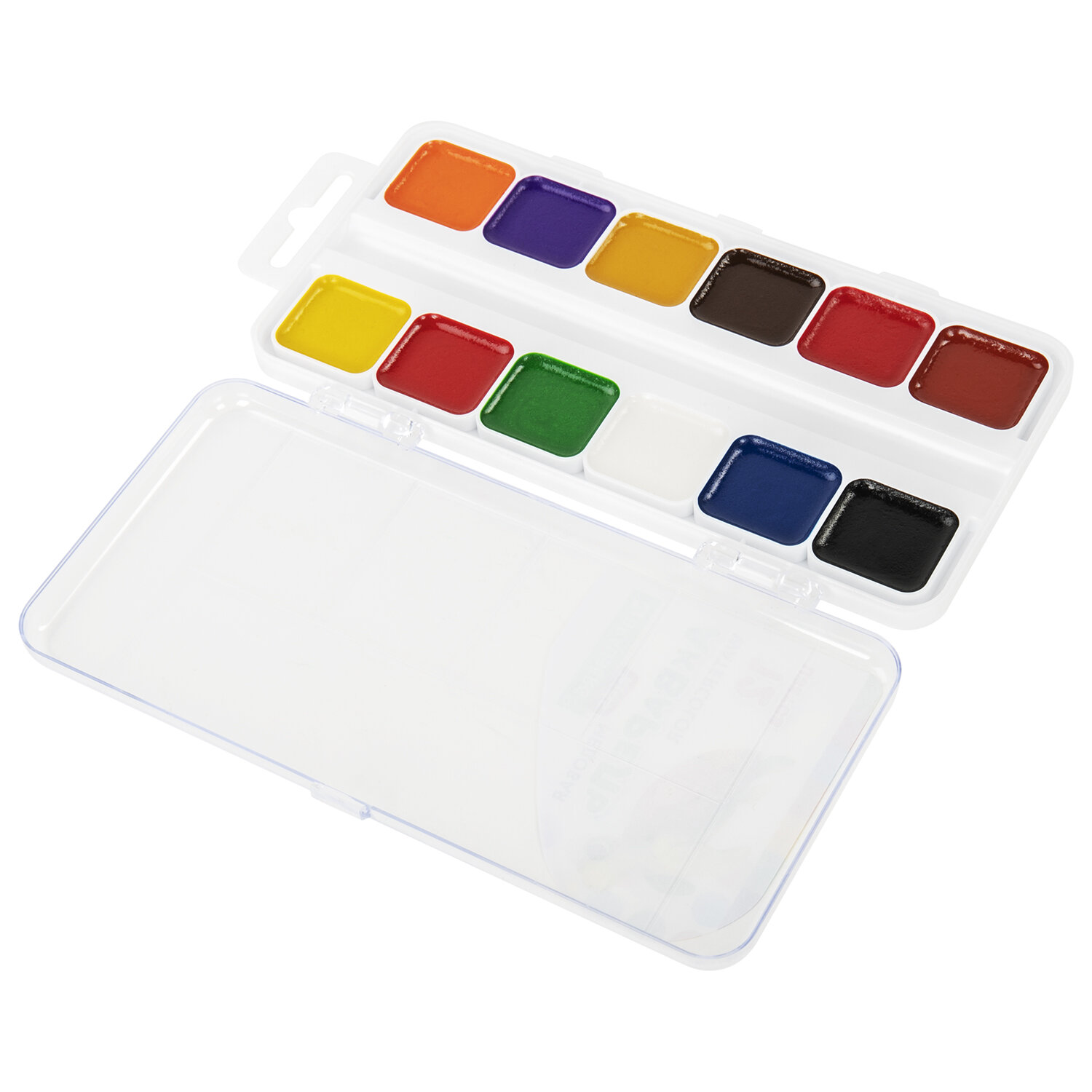 192282, (цена за 12 шт.) Краски акварельные BRAUBERG KIDS, медовые, 12 цветов, квадратные кюветы, пластиковый пенал, 192282