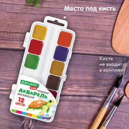 В наличии 670 Р192282, (цена за 12 шт.) Краски акварельные BRAUBERG KIDS, медов...