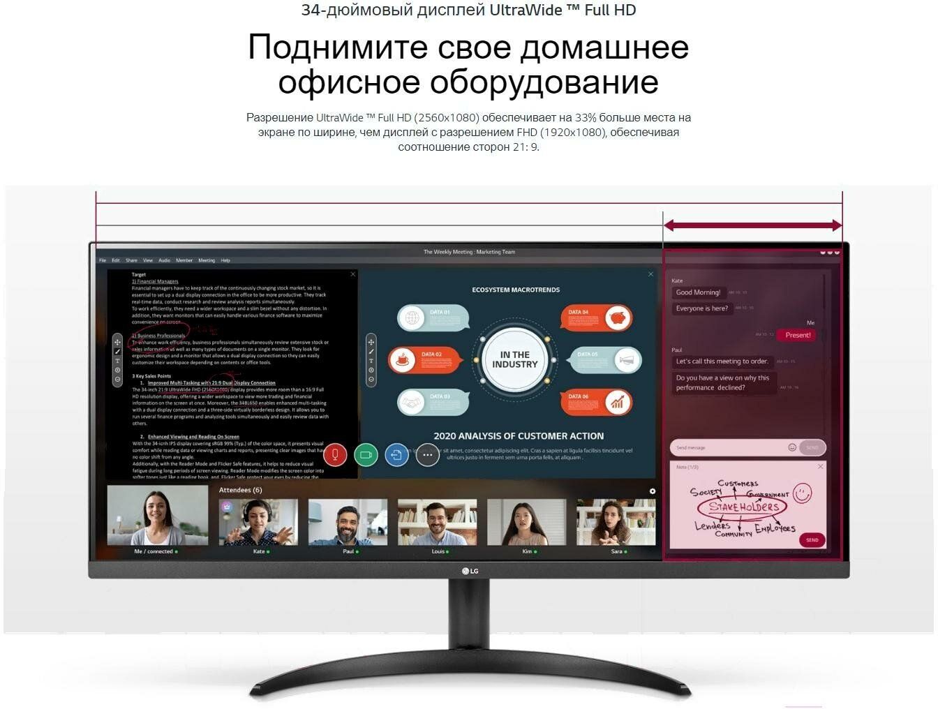 Описание товара Монитор LG 34" UltraWide 34WP500-B черный IPS