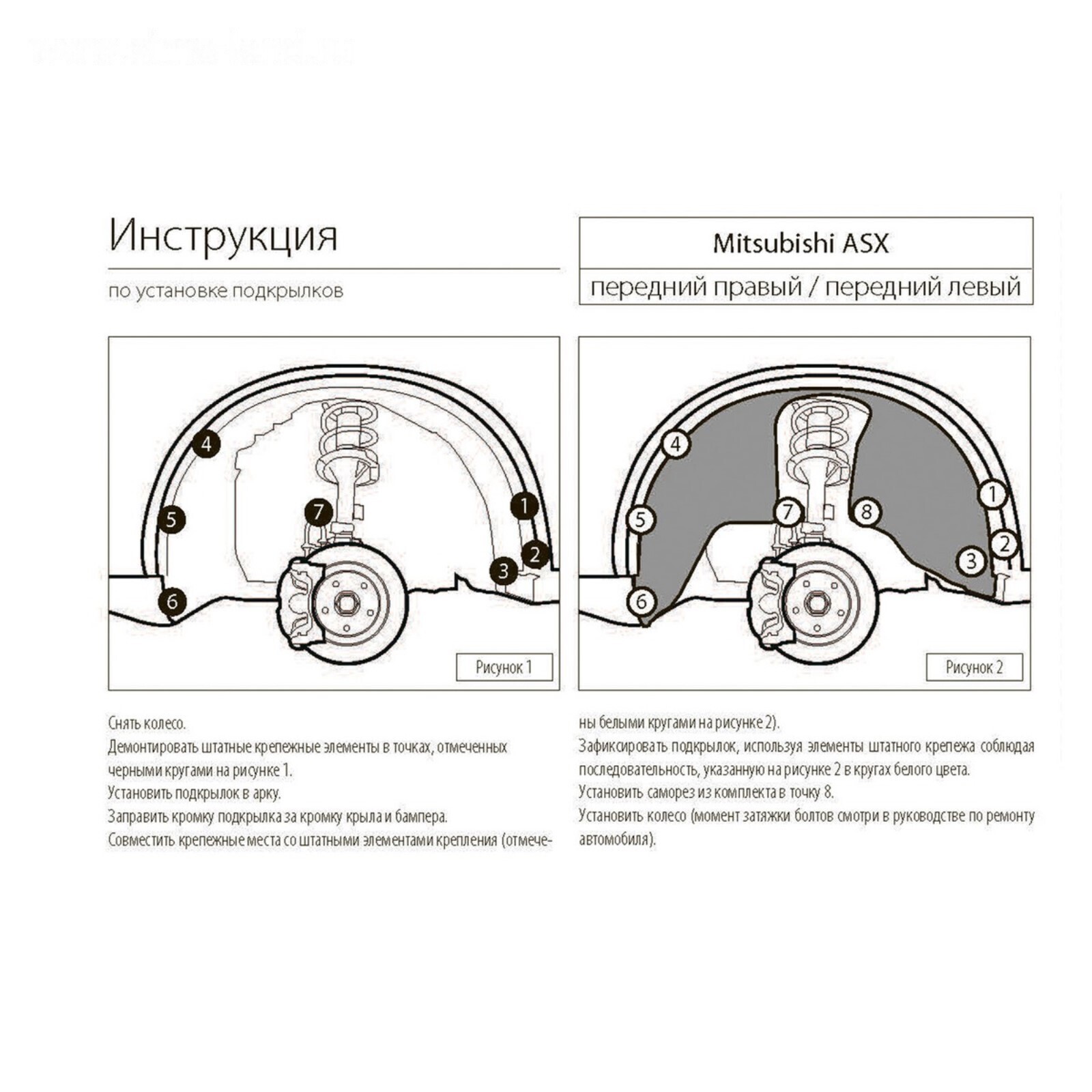 Подкрылок передний левый Rival для Mitsubishi ASX 2010-2019, пластик, с крепежом, 44001001