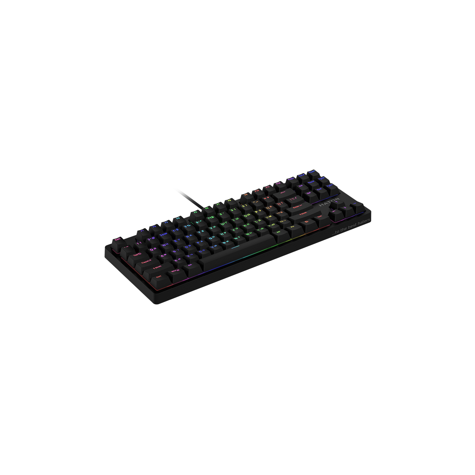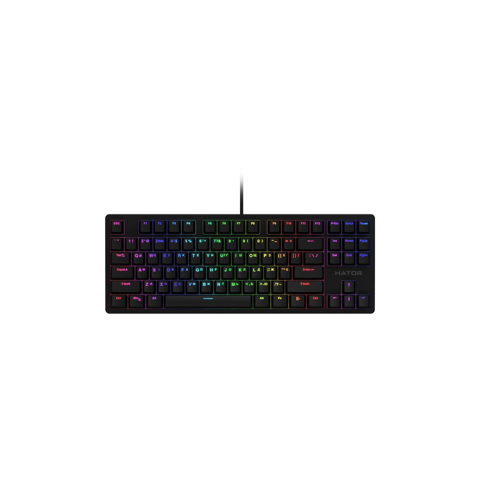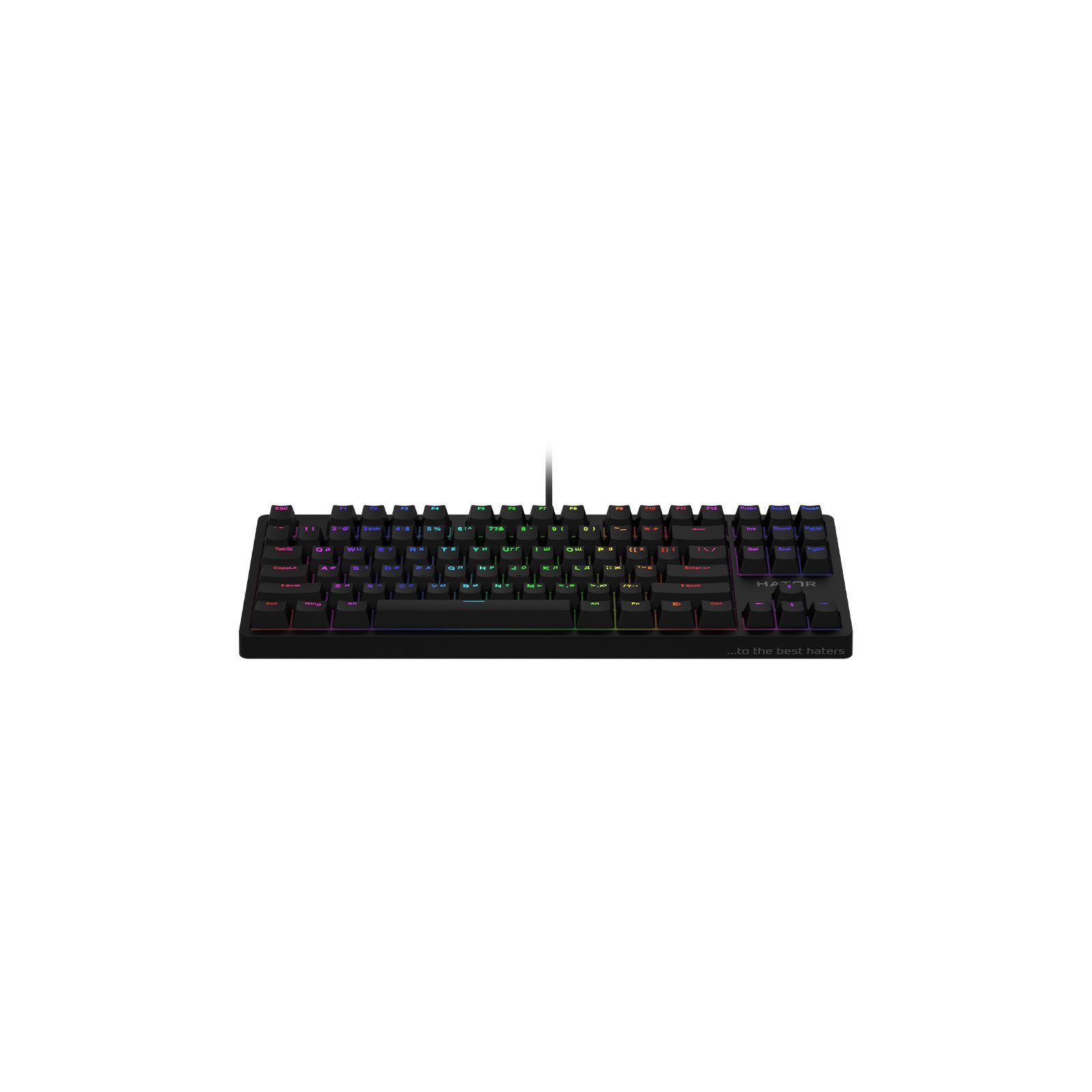 Rockfall TKL Mecha – чудово збалансована клавіатура. Вона має у своєму арсеналі все, що потрібно сучасному геймеру: компактні розміри, швидкі механічні перемикачі з великим ресурсом, яскраве підсвічування RGB і надійні кейкапи PBT. Механічні перемикачі HATOR Premium змащені на етапі виробництва, що забезпечує максимальний тактильний та акустичний комфорт. Вбудована металева пластина, посилена друкована плата, корпус із міцного пластику та кейкапи PBT гарантують надійність та витривалість клавіатури. Повноцінне RGB підсвічування з можливістю налаштування кожної клавіші – вибір із 16.8 мільйона кольорів. П'ять рівнів яскравості та різні встановлені ефекти. Надійні та приємні на дотик PBT кейкапи подвійного лиття мають бездоганне нанесення всіх символів зі стовідсотковим підсвічуванням.