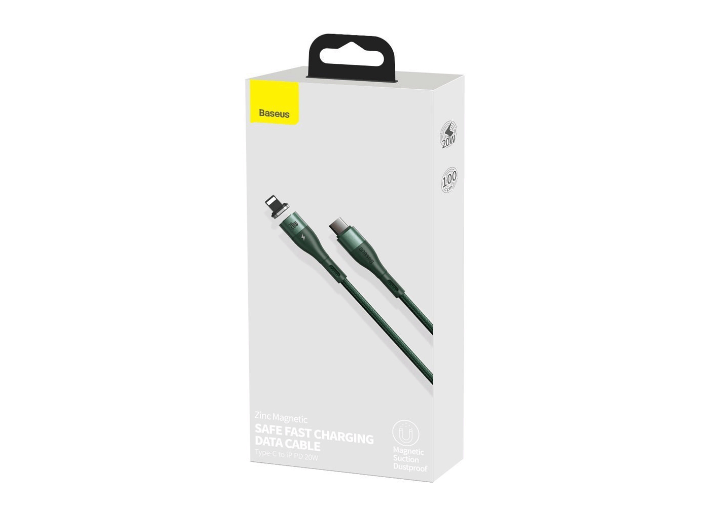 Описание товара Кабель Baseus Zinc Magnetic Safe Fast Type-C to Lightning PD 20W 1m Green CATLXC-06