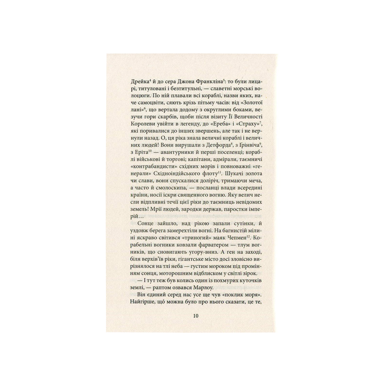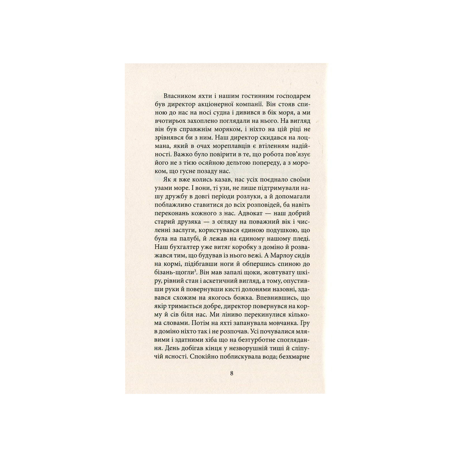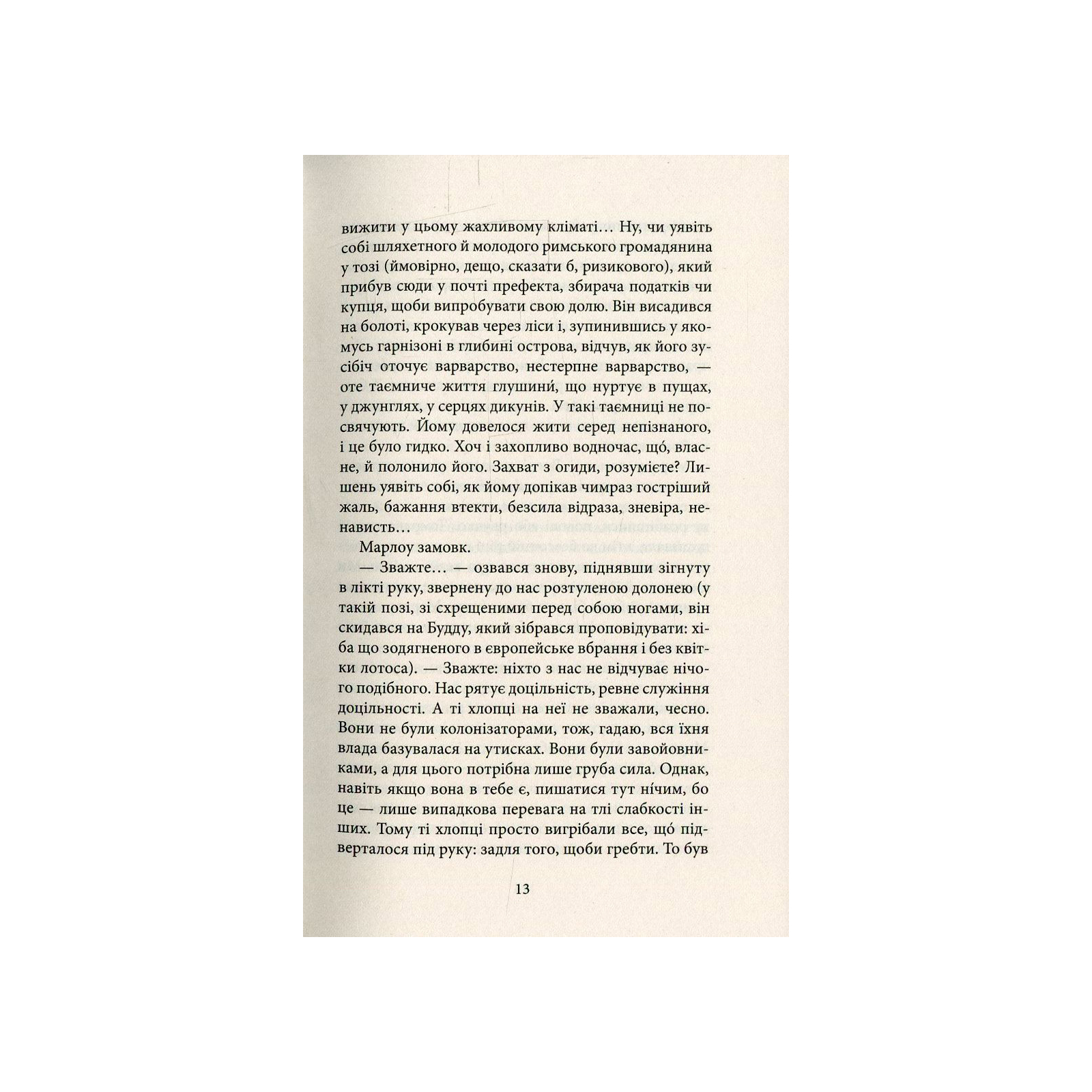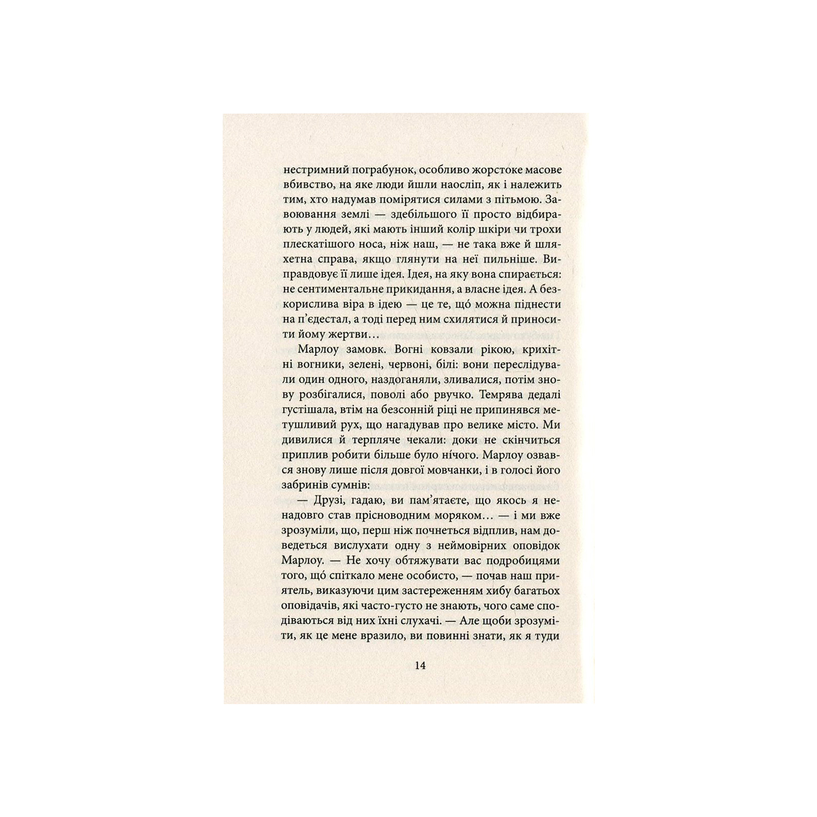 Роман «Серце пітьми» (1902) всесвітньо відомого англійського письменника польського походження та вихідця з України Джозефа Конрада (1857–1924) сягає найглибших основ людського єства і, можливо саме через це, вважається одним із найвидатніших літературних творів ХХ століття. Його основною темою, як і інших творінь письменника, є нескінченна мандрівка західної людини світовими околицями. Бездомний, знекорінений моряк Марлоу винаймається шкіпером річкового пароплава у бельгійську торгову компанію з єдиним завданням: знайти у нетрях Конго її найуспішнішого агента — постачальника слонової кістки Курца, — який, з невідомих для Марлоу причин, став для компанії дуже «незручним». Але буденна для колоніальних часів мандрівка перетворюється у жахливу подорож до серця пітьми… Сюжет цього роману, але вже наповнений обставинами війни у В’єтнамі, ліг в основу кінематографічної драми Френсіса Копполи «Апокаліпсис сьогодні» (1979).
