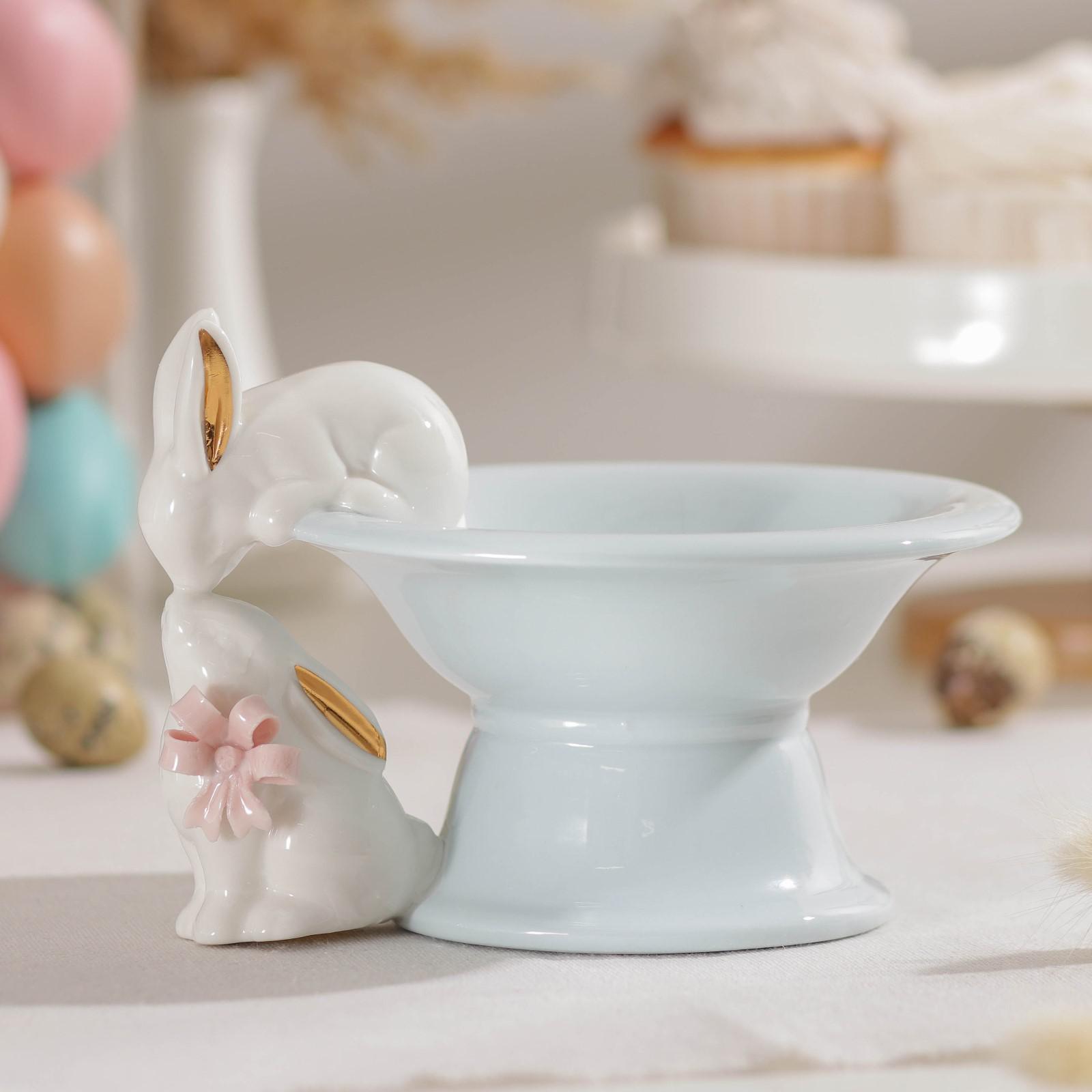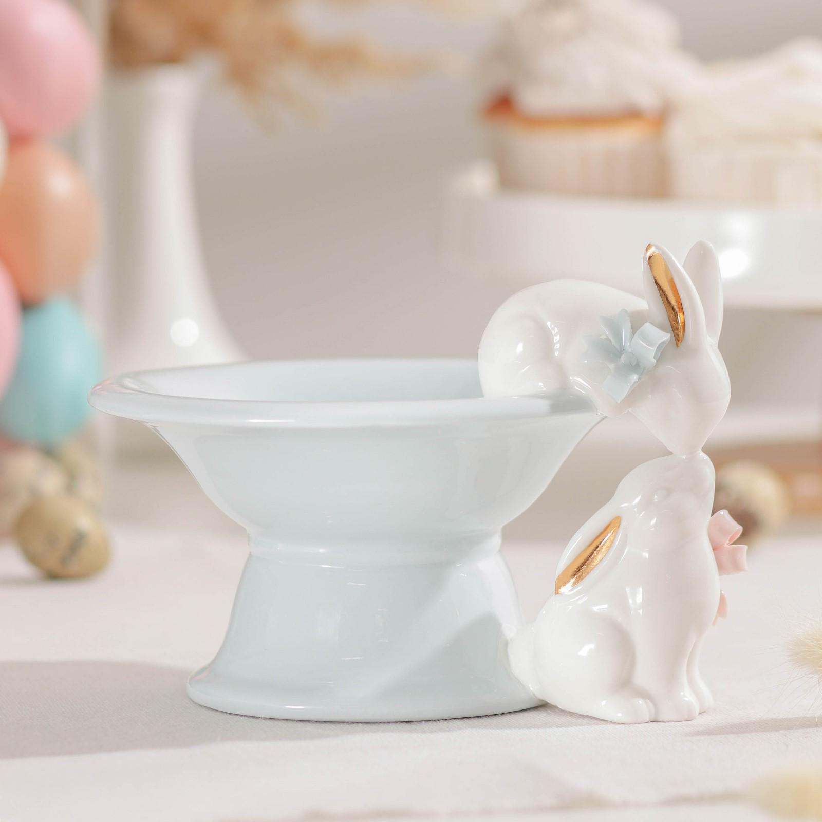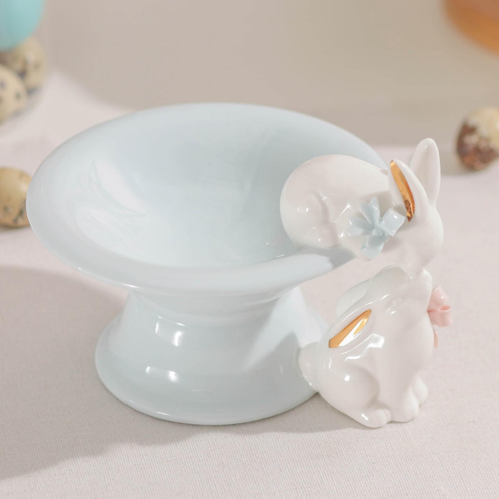 Конфетница керамическая «Зайка», 150 мл, 18×15,5×12 см, цвет голубой