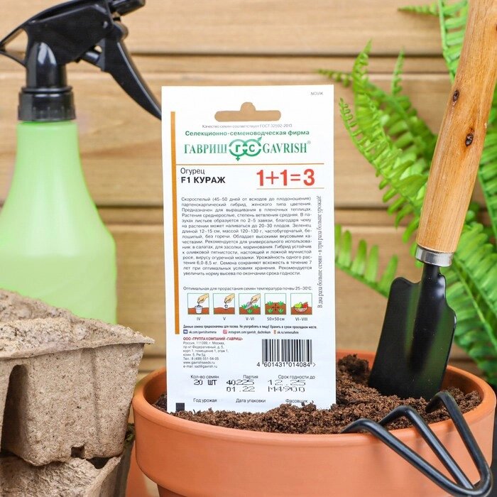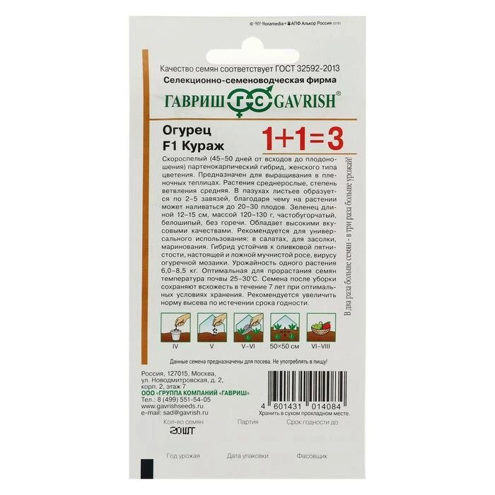 Семена Огурец "Кураж", F1, серия 1+1, 20 шт