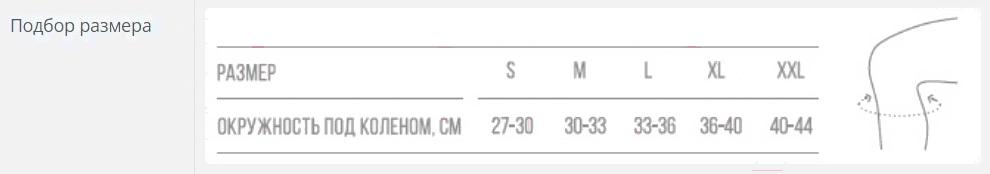- Обхват колена от 40 до 44 см (окружность под коленом)