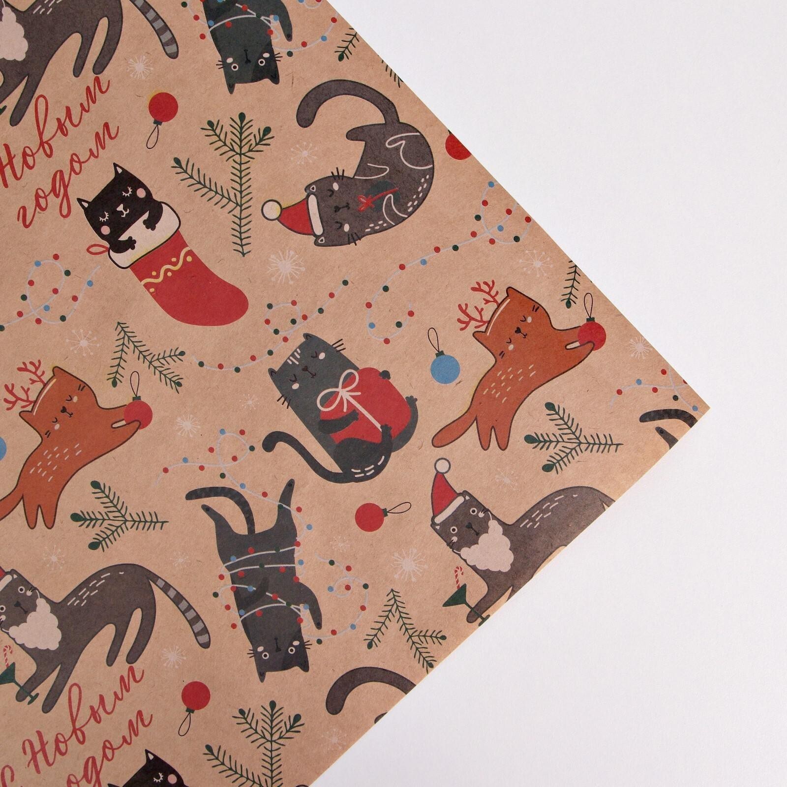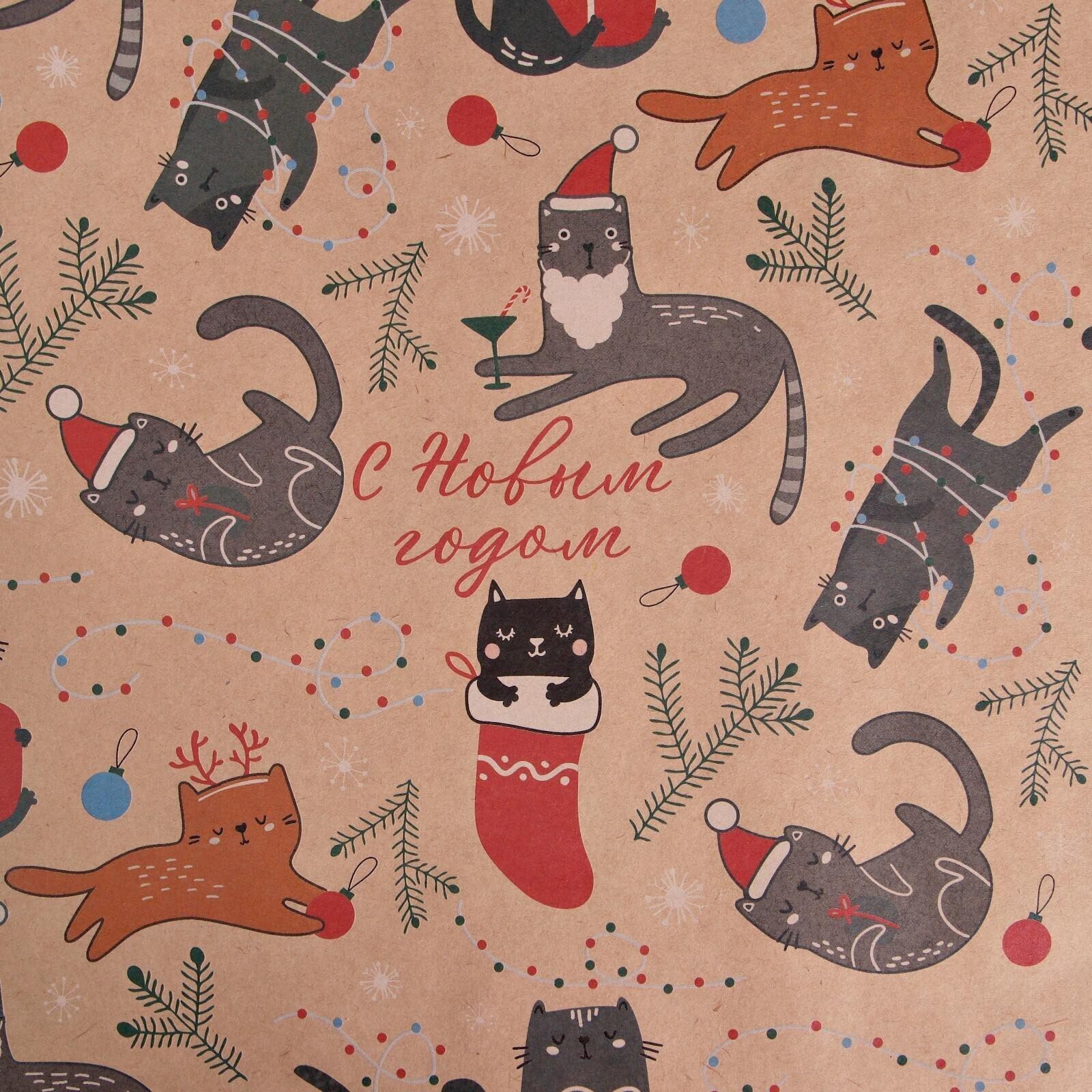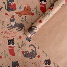 Бумага упаковочная крафтовая «Веселые котики», 50 × 70 см