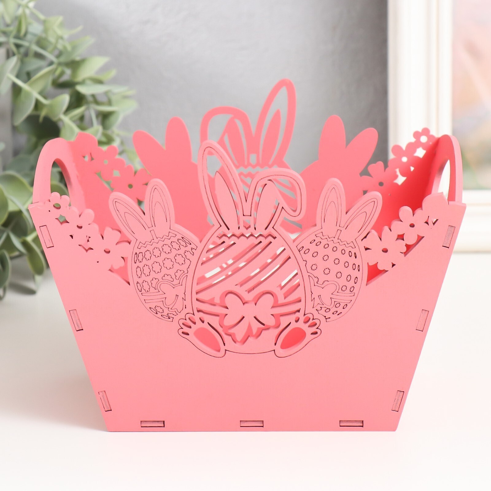 Корзина-шкатулка Пасхальная "Яйцо" 18х12х13,5 см, коралловый