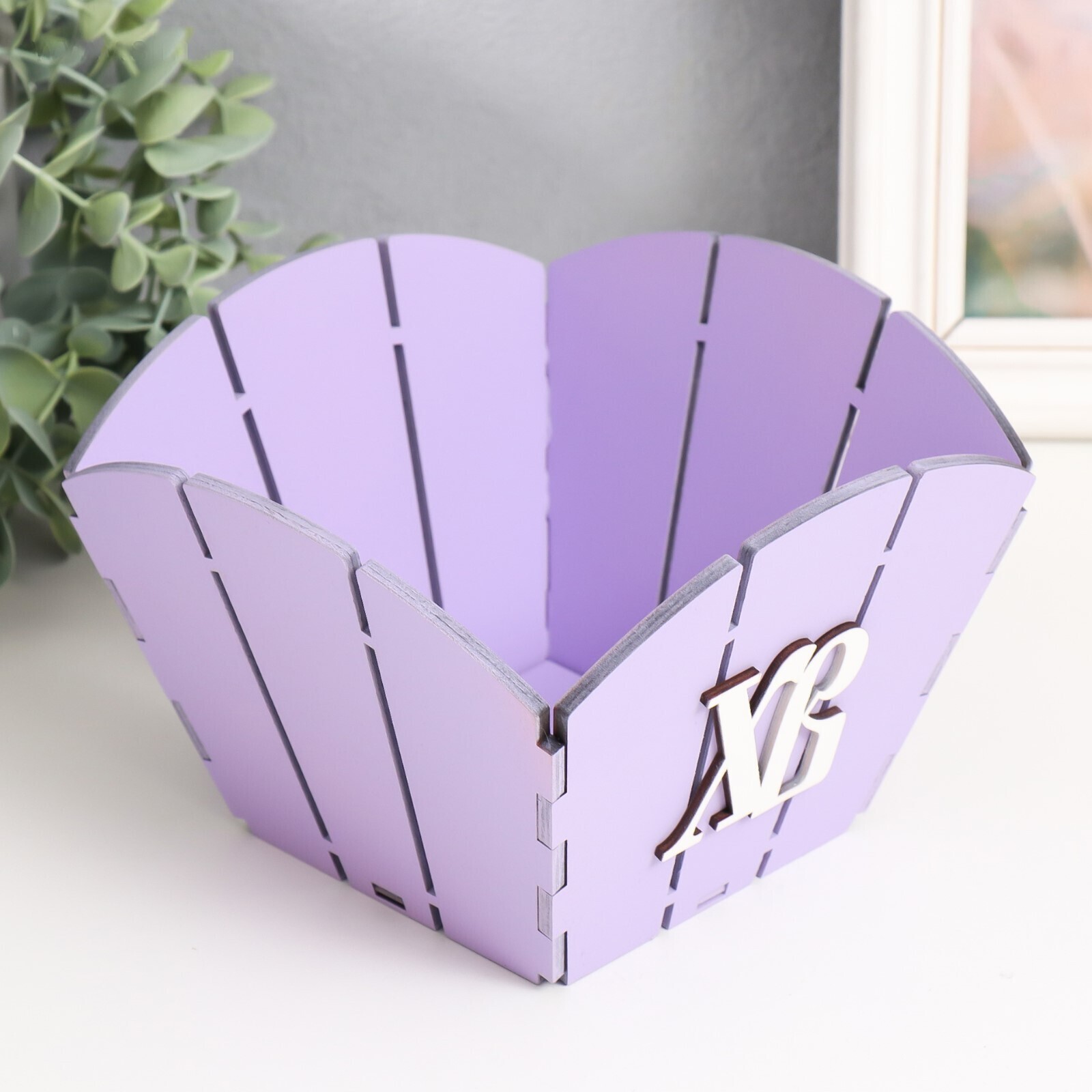 Корзина-шкатулка Пасальная "ХВ" 18х18х12 см, сиреневый