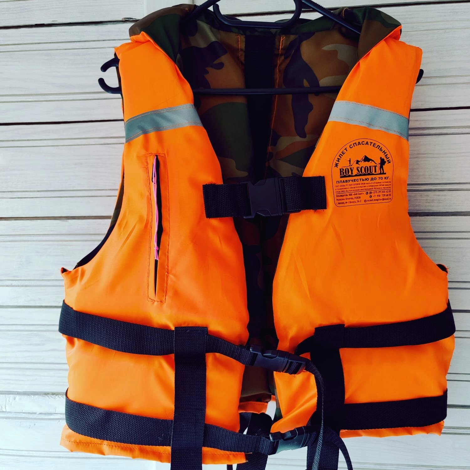 Жилет спасательный с подголовником (с наполнителем, ткань Oxford, оранж. хаки). Имеет доступ На вес до 30 кг