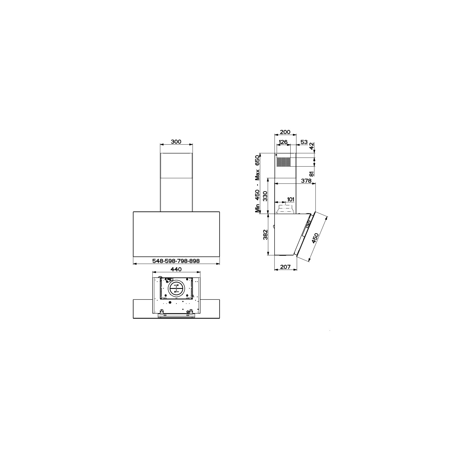 Працює у двох режимах — відведення й рециркуляції повітря, однаково ефективна з плитами різного пристрою, має три швидкості роботи.
