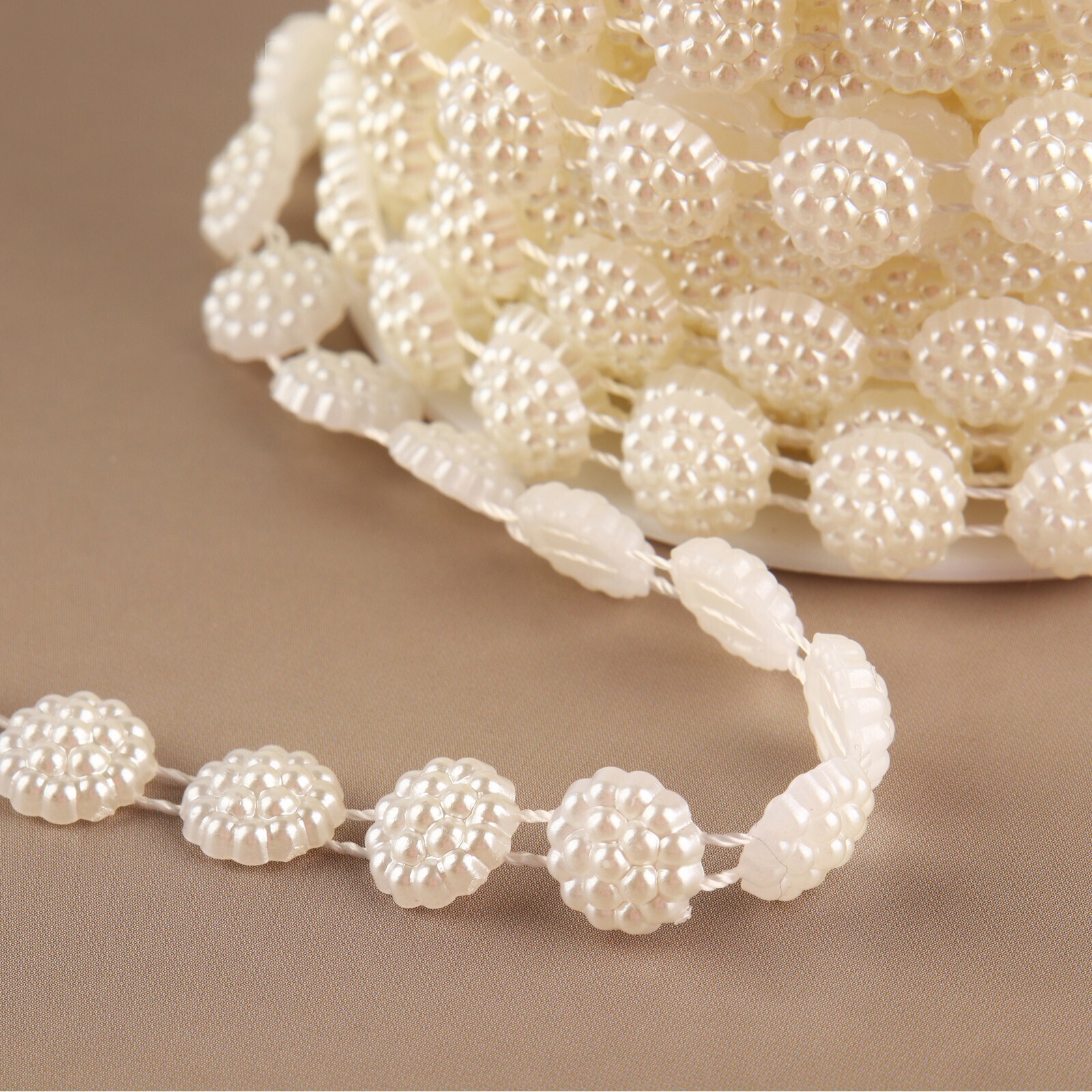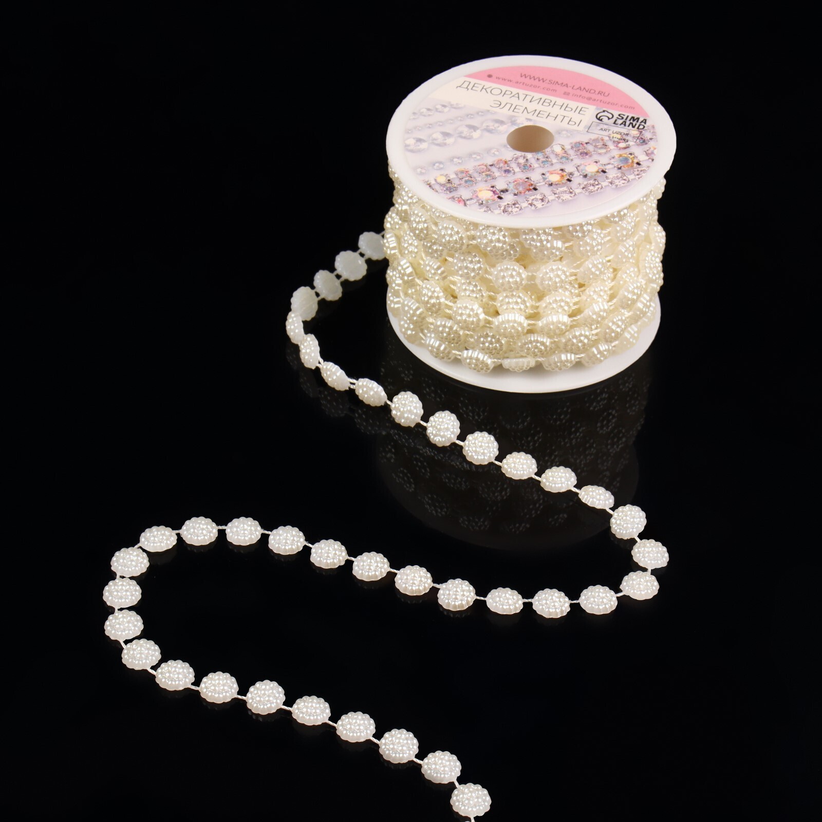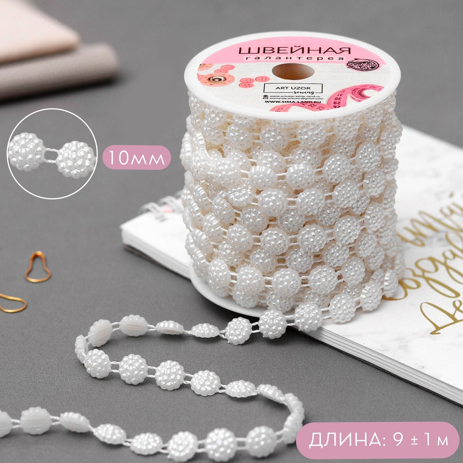 Жемчуг на нитях, плоский, 10 мм, 9 ± 1 м, цвет молочный