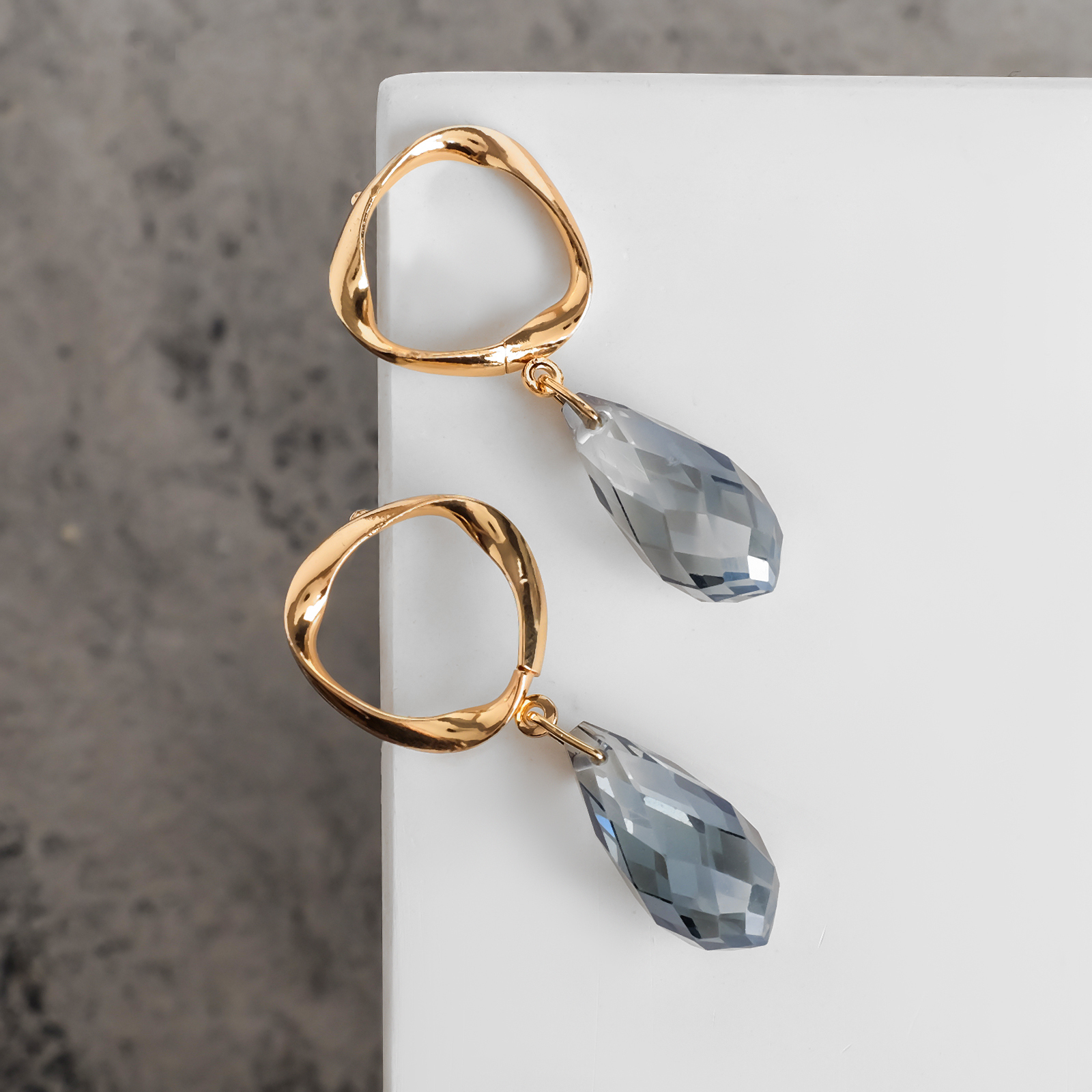 Серьги со стразами "Сиа" капли, цвет синий в золоте