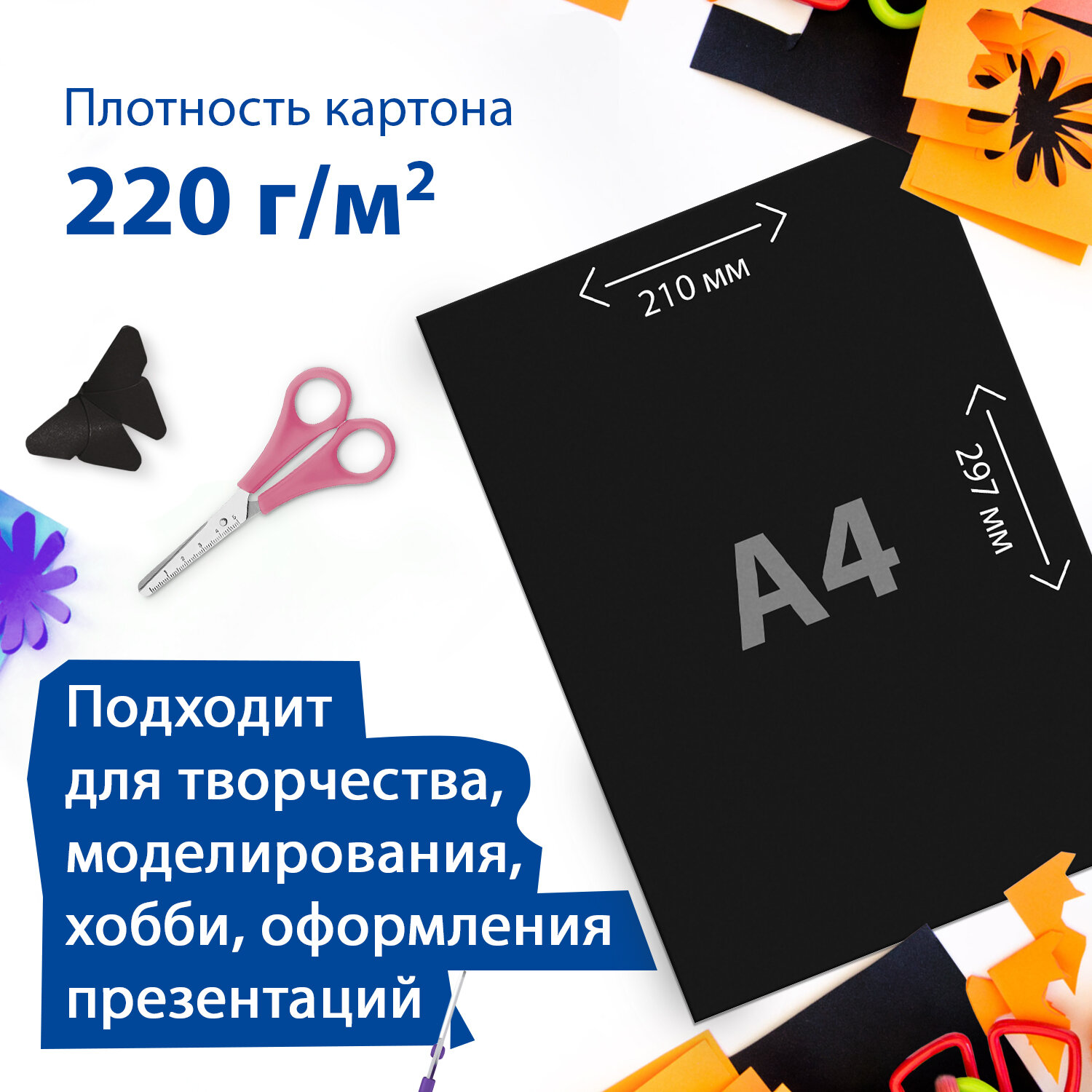 113506, Картон цветной А4 ТОНИРОВАННЫЙ В МАССЕ, 50 листов, ЧЕРНЫЙ, в пленке, 220 г/м2, BRAUBERG, 210х297 мм, 113506