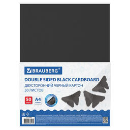 Описание товара 113506, Картон цветной А4 ТОНИРОВАННЫЙ В МАССЕ, 50 листов, ЧЕРНЫЙ, в пленке, 220 г/м2, BRAUBERG, 210х297 мм, 113506