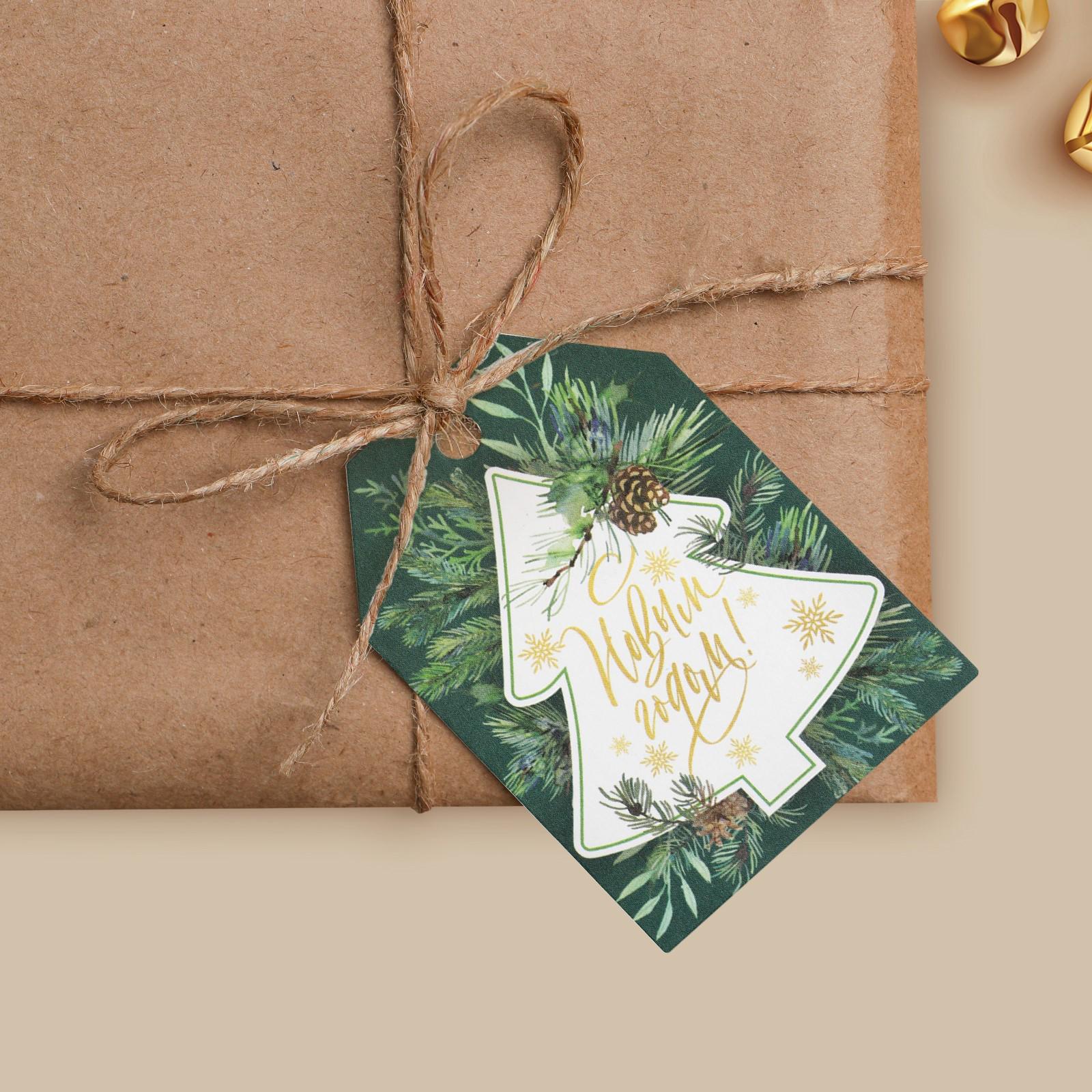 Открытка-шильдик на подарок «Ёлочка», акварельный картон 5 × 7 см