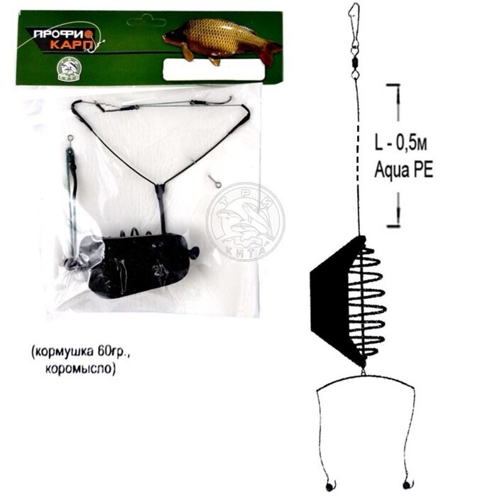 Снасть карповая, кормушка всплывающая, коромысло, 2 крючка №2, 60 г