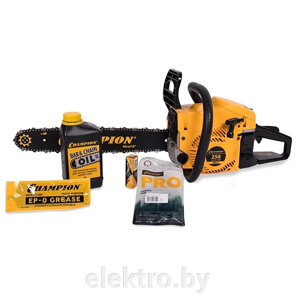 CHAMPION A256-18 бензиновая цепная пила, 2,5 кВт, 18"400 мм, 12500 об/мин + подарок: масло для цепи 1л; свеча; цепь;