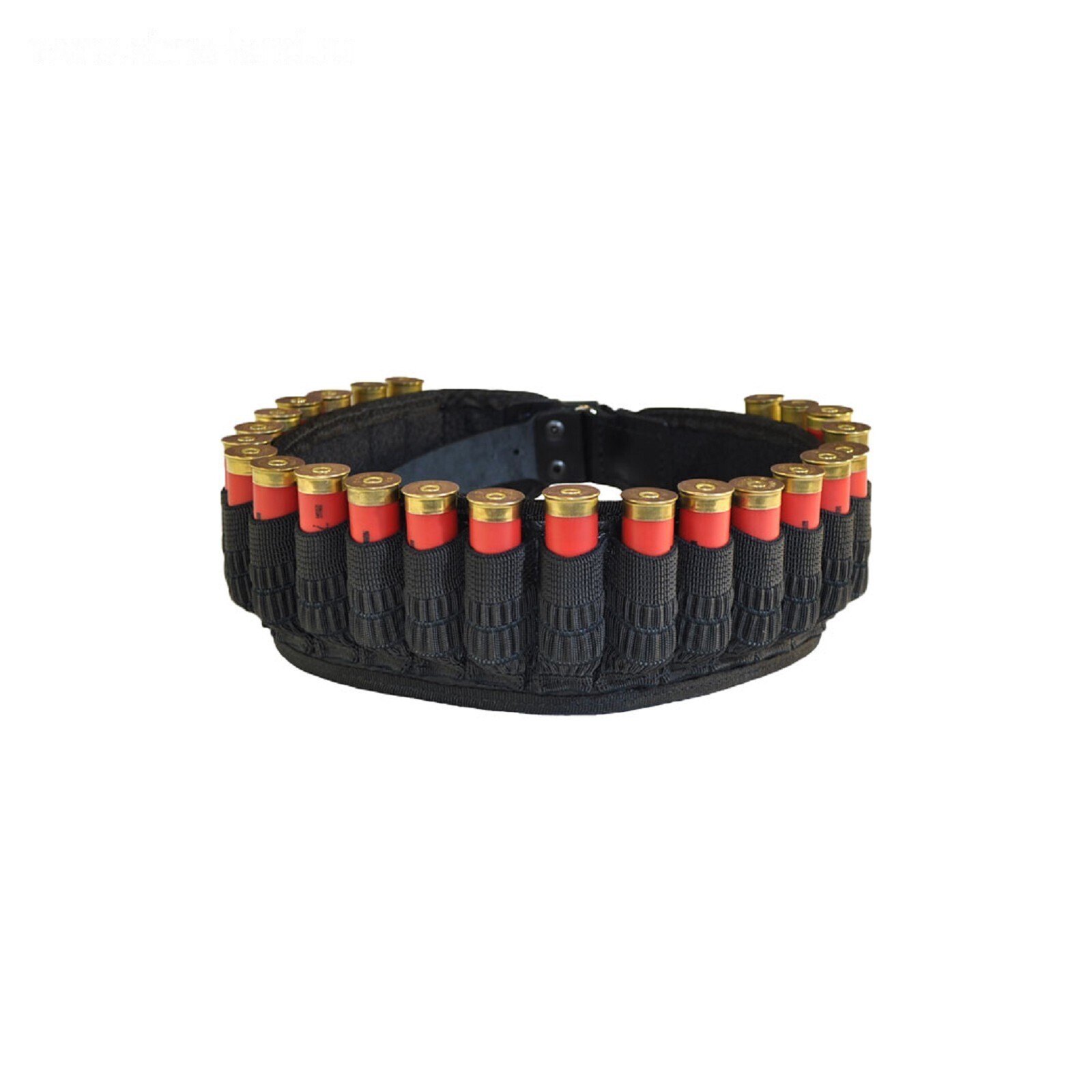 Патронташ открытый на 24 патрона, 12/20/32к, кожа, гофрированная резинка