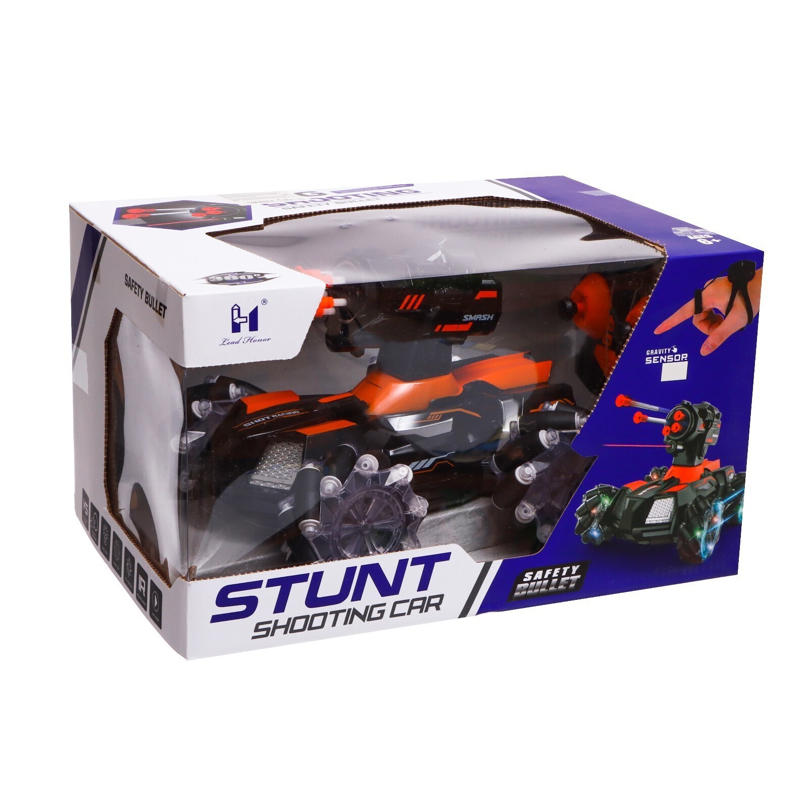 Танк радиоуправляемый Stunt, 4WD полный привод, стреляет ракетами, цвет чёрно-оранжевый, уценка