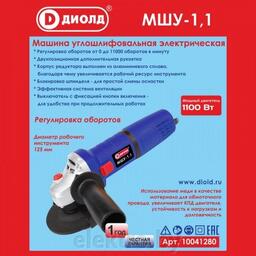 ДИОЛД МШУ-1,1 машина шлифовальная угловая, 220В/50 Гц, 1100 Вт, 0-11000 об/мин