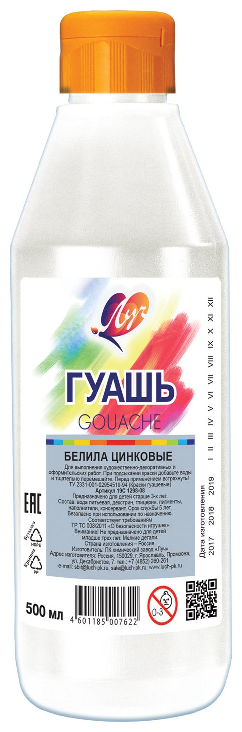 Гуашь белила цинковые Луч 500 мл, 19С 1298-08