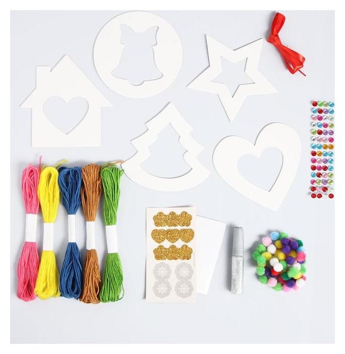 С набором для творчества «Ёлочные украшения» у вас получится смастерить 5 разных ёлочных игрушек.