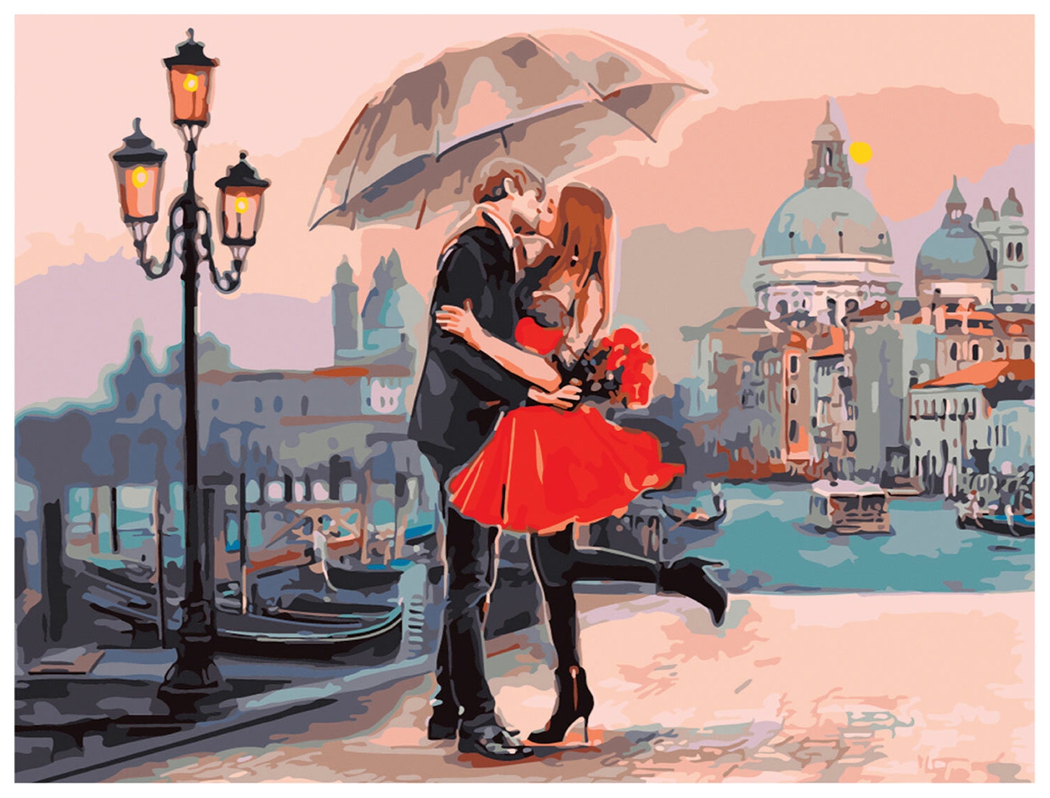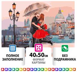Картина стразами (Алмазная мозаика) 40х50 см, остров сокровищ "Прогулка под зонтом", без подрамника, 662420