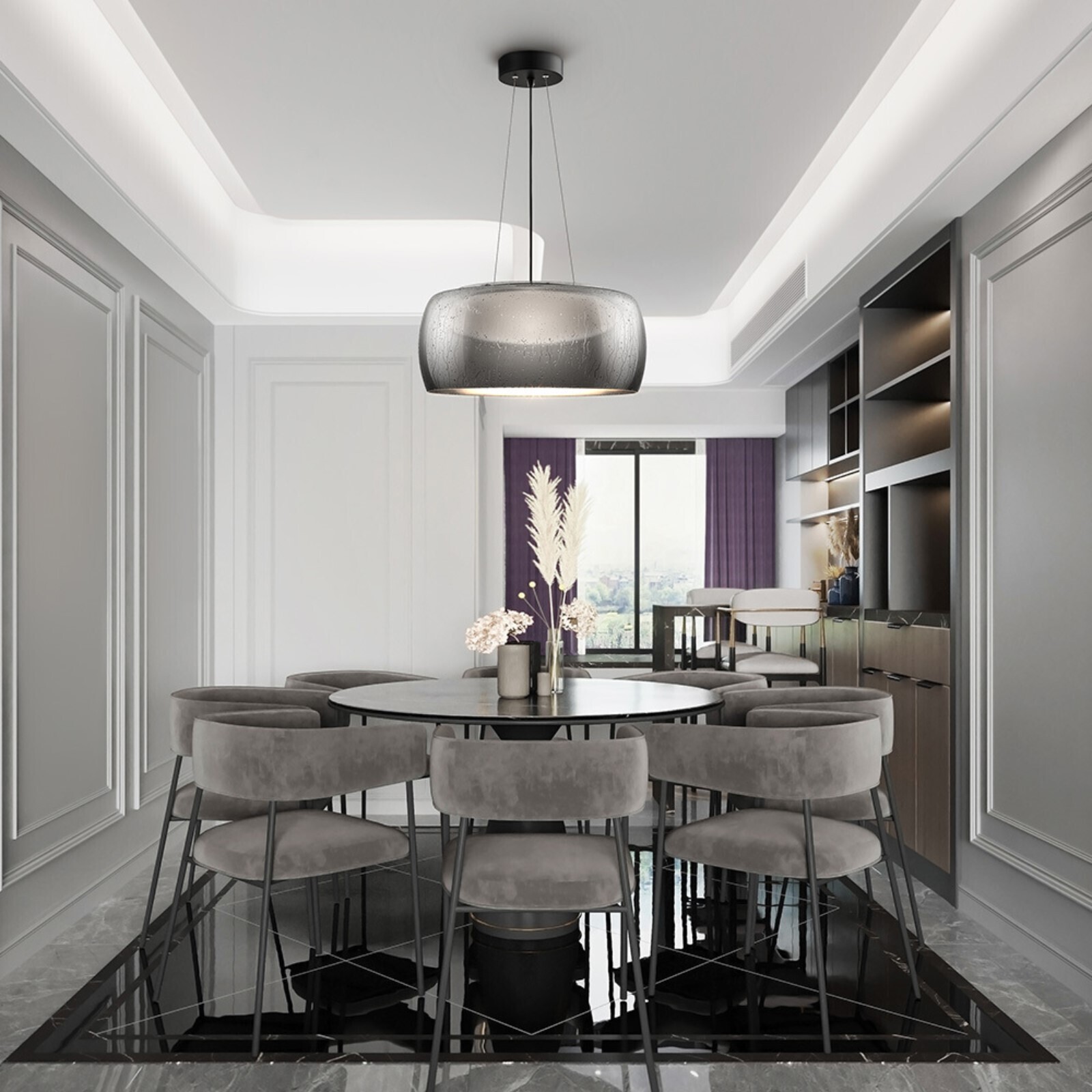 Магия выдувного стекла дарит светильникам серии поэтичный, наполненный загадочностью образ. За вуалью из застывших капель воды скрывается теплый светодиодный свет, окутанный молочной пеленой опалового рассеивателя. Серия представлена подвесными и потолочными светильниками с плафонами янтарного и дымчатого цвета. Высота подвесных светильников регулируется длиной тросов.