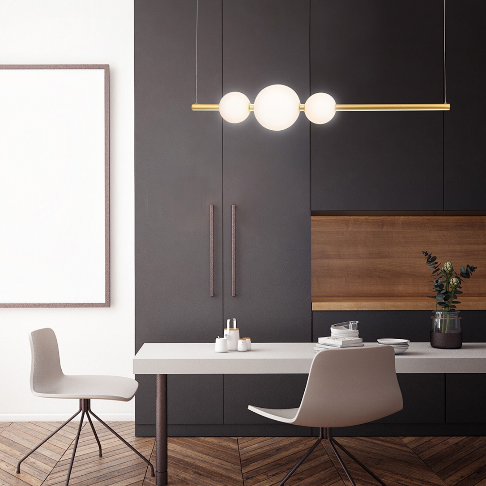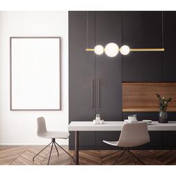 Чрезвычайно современная и концептуальная серия подвесных светильников, которые не только создадут неповторимую атмосферу, но и станут ярким акцентом в интерьере. Арматура изготовлена из металла. Светящийся стержень пронизывает стеклянные шары. В качестве источника света использованы интегрированные SMD-светодиоды. Модели серии представлены в двух размерах. Высота подвесных светильников регулируется длиной тросов.