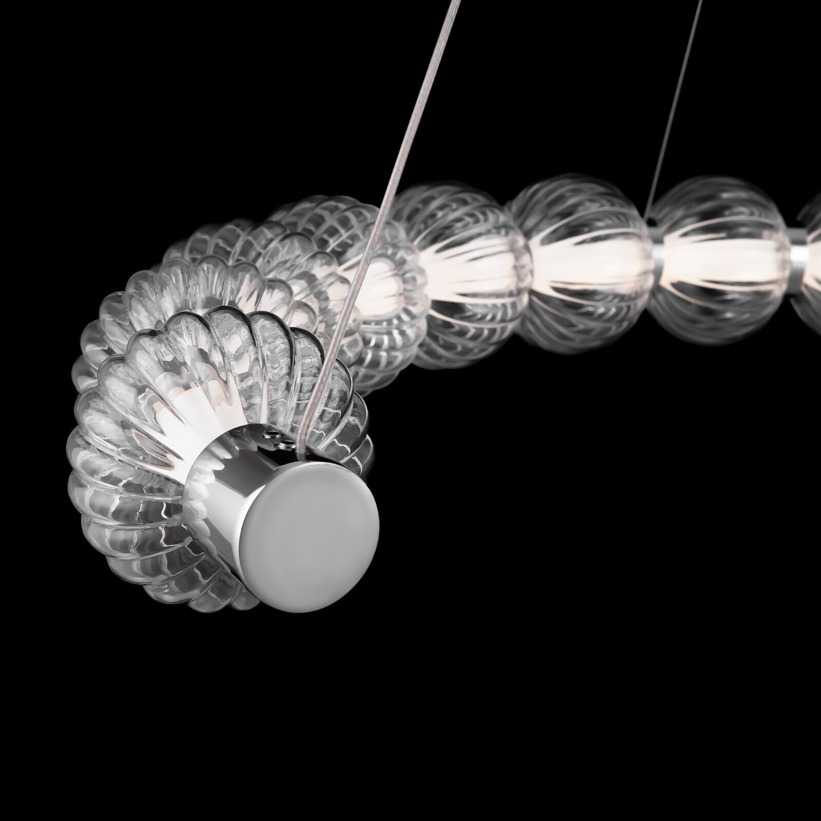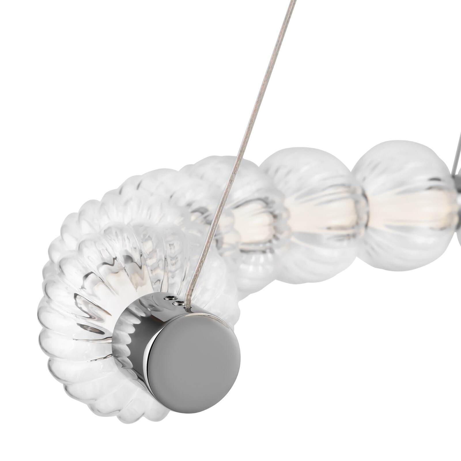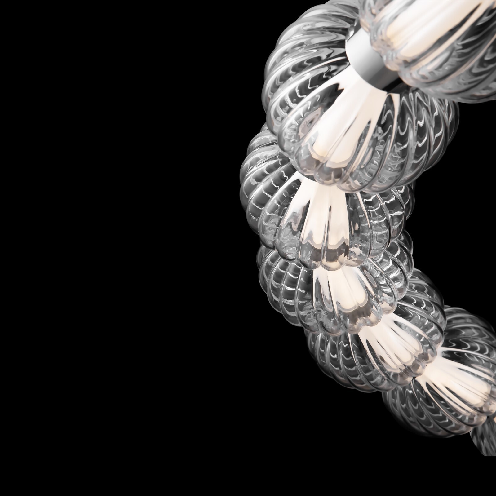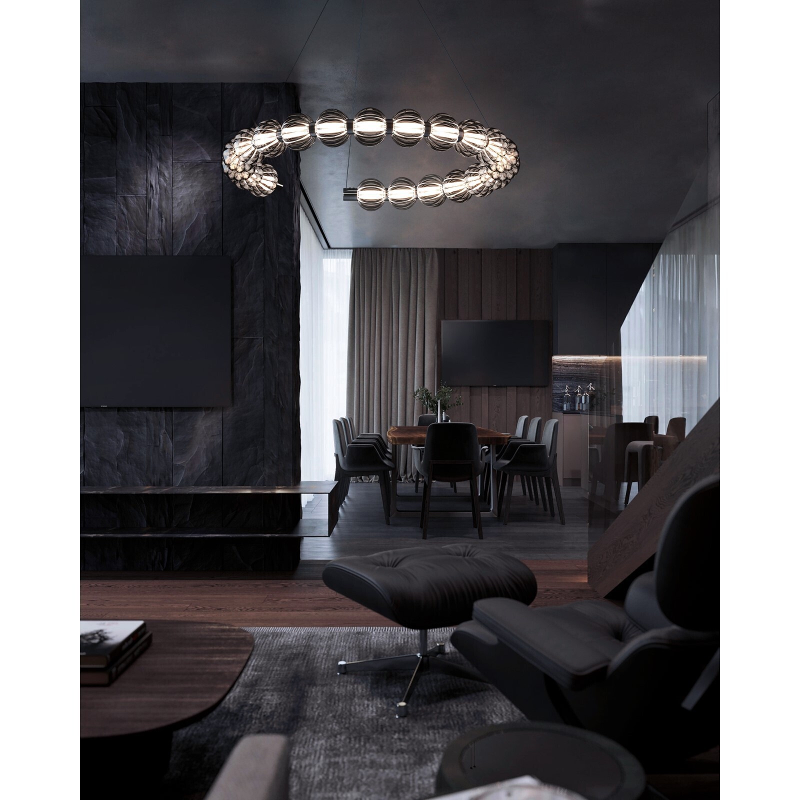 Этнические силуэты традиционных африканских украшений, наделенных тайным смыслом, легли в основу дизайна серии Amulet. Символика оберега, приносящего удачу и являющегося защитником дома, органично укладывается в канву современных интерьерных трендов, что подтверждают несколько международных премий. Акцентные декоративные элементы в виде рельефных сфер выполнены из литого стекла. Декор добавляет композиции визуальной легкости. Источник света – светодиодная лента – заключена в матовый акриловый рассеиватель. Такое решение обеспечивает мягкое освещение, а температура 4000К, близкая к дневному свету, идеальна для повседневной жизни. Серия включает подвесные светильники, высота которых регулируется при помощи тросов, а также настольную лампу.