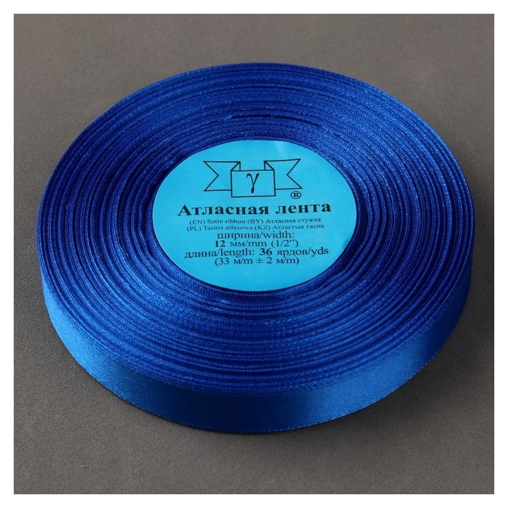 Лента атласная, 12 мм × 33 ± 2 м, цвет синий №040