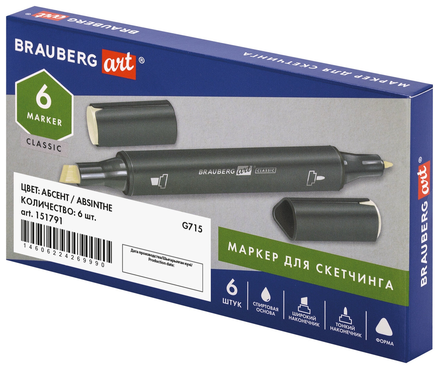 Маркер для скетчинга двусторонний 1 мм - 6 мм Brauberg ART Classic, абсент (G715), 151791