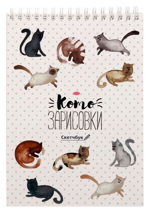 Скетчбук на гребне "Котозарисовки", А5, 40 листов