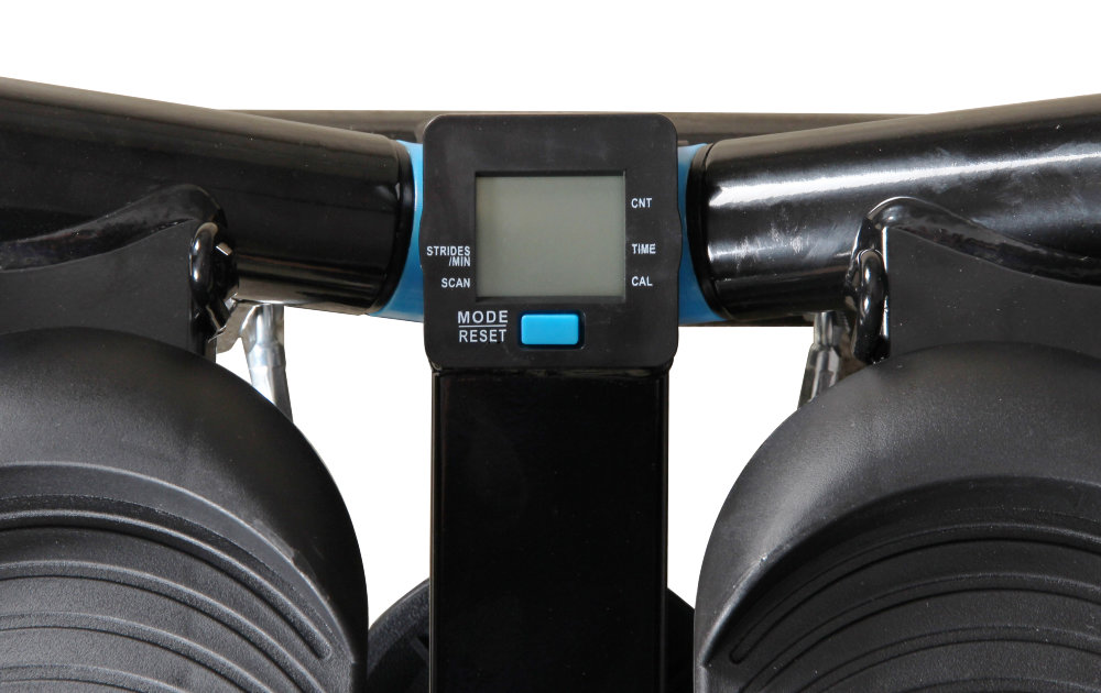 Встроенный компьютер отображает: время тренировки, количество шагов за тренировку, количество шагов в минуту, потраченные калории.