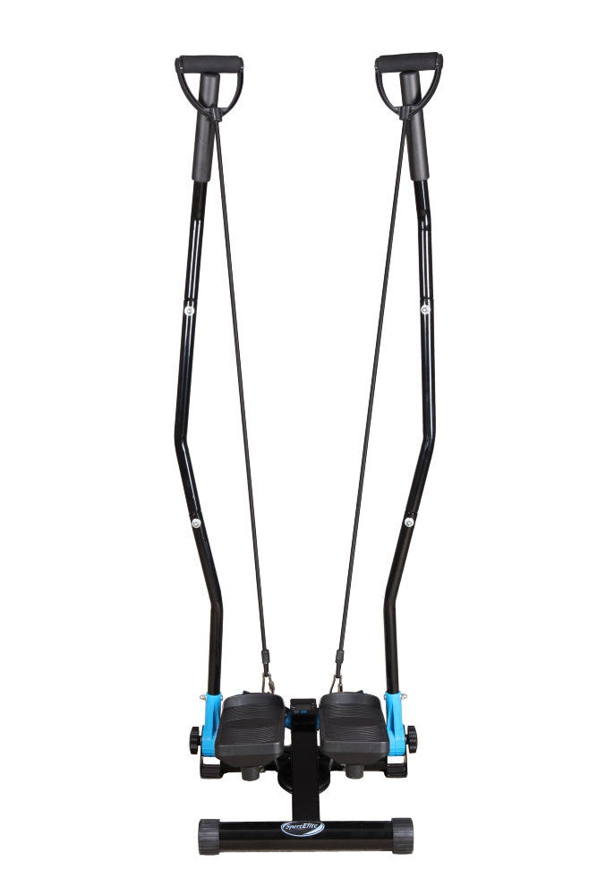 Степпер поворотный с поручнями -безопасный и эффективный тренажер ТМ SportElite укрепляет и повышает тонус мышц ног, а так же задействует в работе мышцы спины, пресса и рук. Оборудован поручнями, которые обеспечивают безопасность тренировок. В комплект входят эспандеры ддя тренировки верхней части тела.