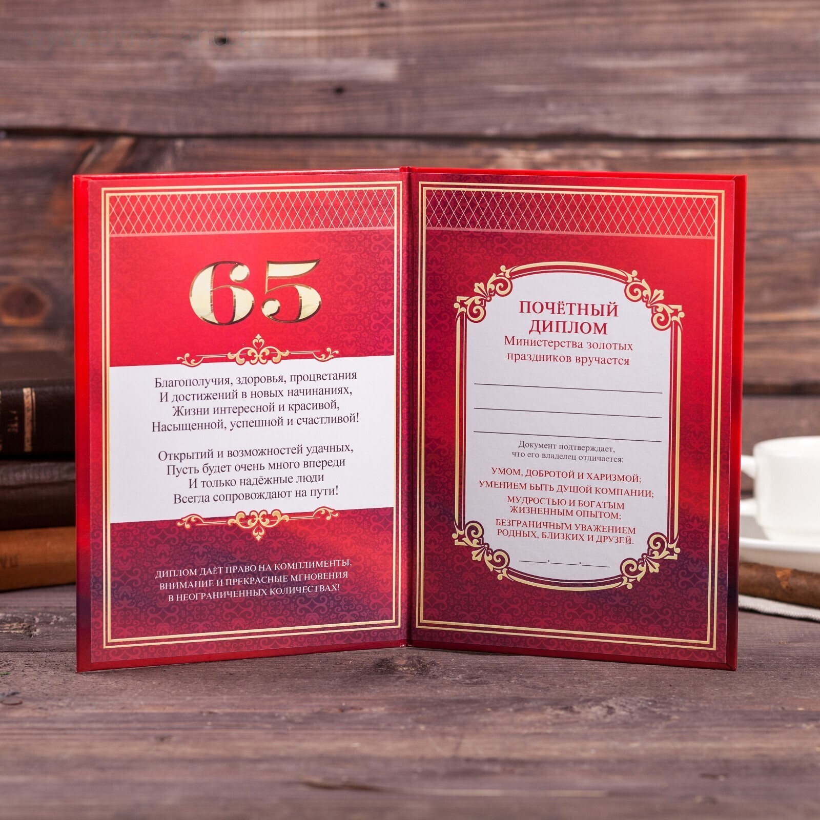 Диплом "С юбилеем 65", 21 х 15 см
