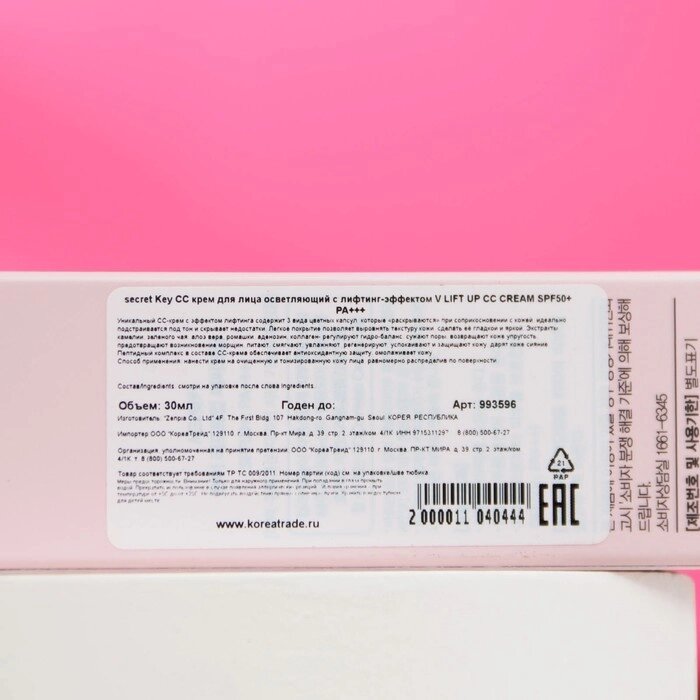 CC-крем для лица Secret Key VCC LIFT UP осветляющий с лифтинг-эффектом , 30 мл