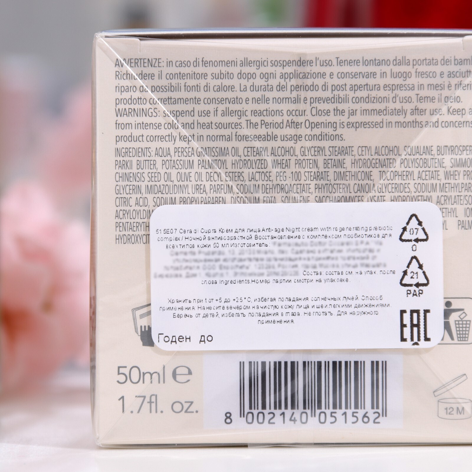 Крем для лица Cera di Cupra Anti-age ночной антивозрастной крем Восстанавливающий, 50 мл