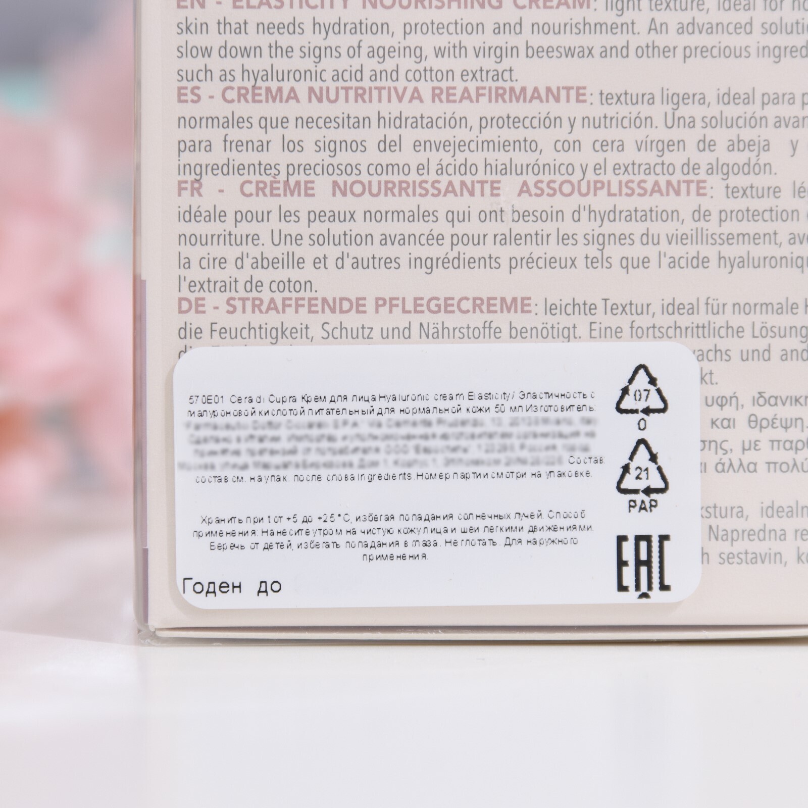 Крем для лица Cera di Cupra Эластичность с гиалуроновой кислотой, 50 мл