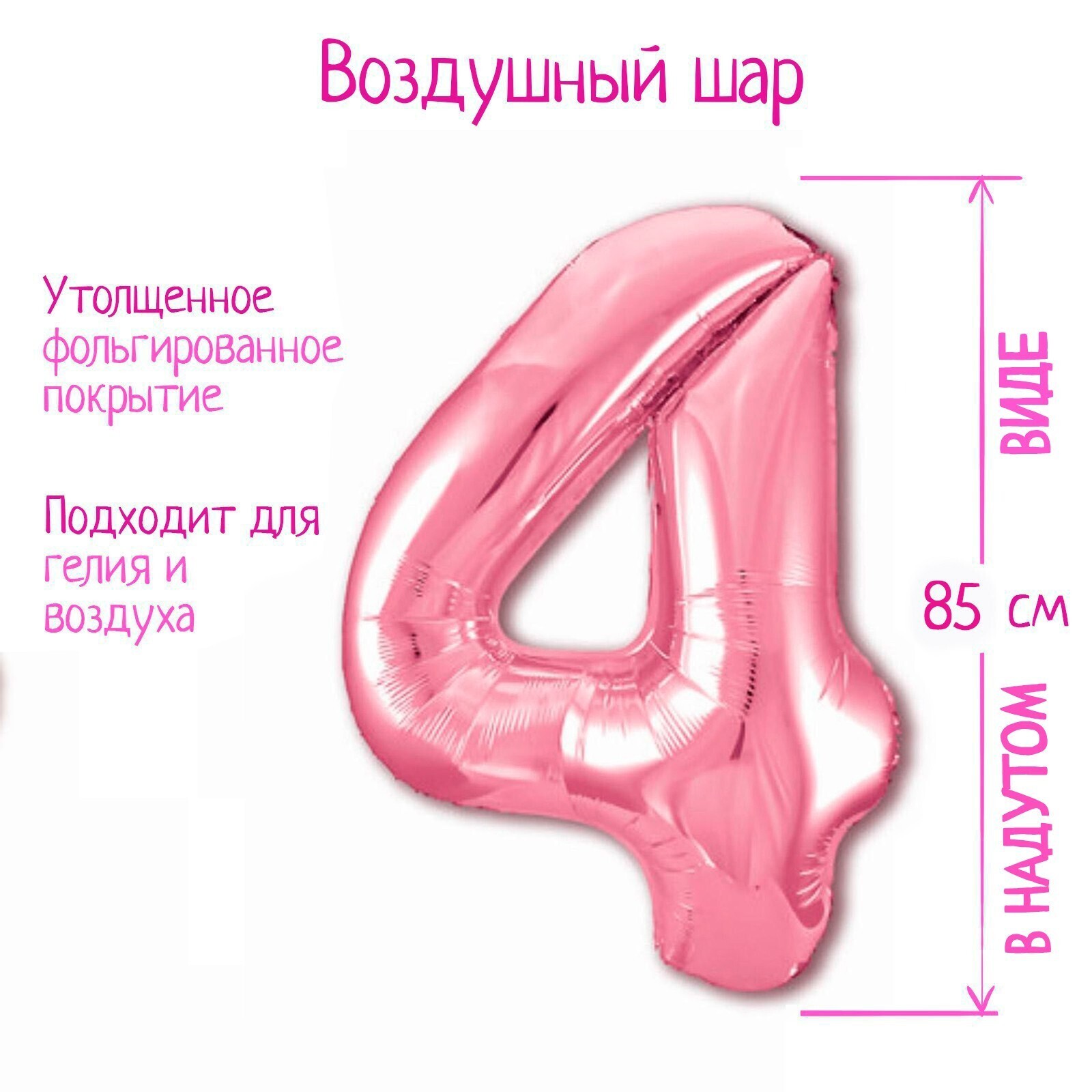 Шар фольгированный 40" «Цифра 4», цвет фламинго Slim